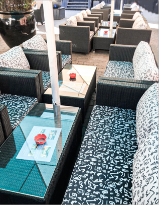The outdoor cushions on their existing outdoor furniture were in need of updating. The cushions needed to be water resistant, high performance being able to withstand a busy commercial entertaining environment. The client wanted to replace 90 cushions.