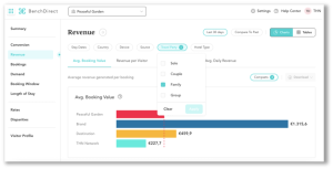 Imagine filtering your hotel’s average booking value data for a specific travel group: families. By applying this filter, you’ll know how much families spend on accommodation booked directly on your website, and compare these results to your competitors. Using these insights, you can determine where you need to adjust your marketing campaigns and strategy based on your property’s situation.
