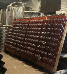Next, we learnt about the aging process of the wines, having the opportunity to see where they are stored. Alex gave us a detailed explanation of what happens during the wines’ aging, as well as the secret to what differentiates wines from one another: dosage. We got to try a few more wines of both sparkling and still variety, from white to red, and taste the exclusive flavours each had to offer. Each one had different aspects, with the red having a touch of cherry and the white having hints of elderflower, which made it all the more interesting to try.