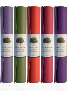 Jade’s mats are made with natural rubber which is a rapidly renewable resource tapped, like maple syrup, from living rubber trees. Most other mats are made with PVC, TPE or EVA, petroleum based (non-renewable) plastics. Natural rubber also grips better, is more comfortable and is less toxic than plastics.