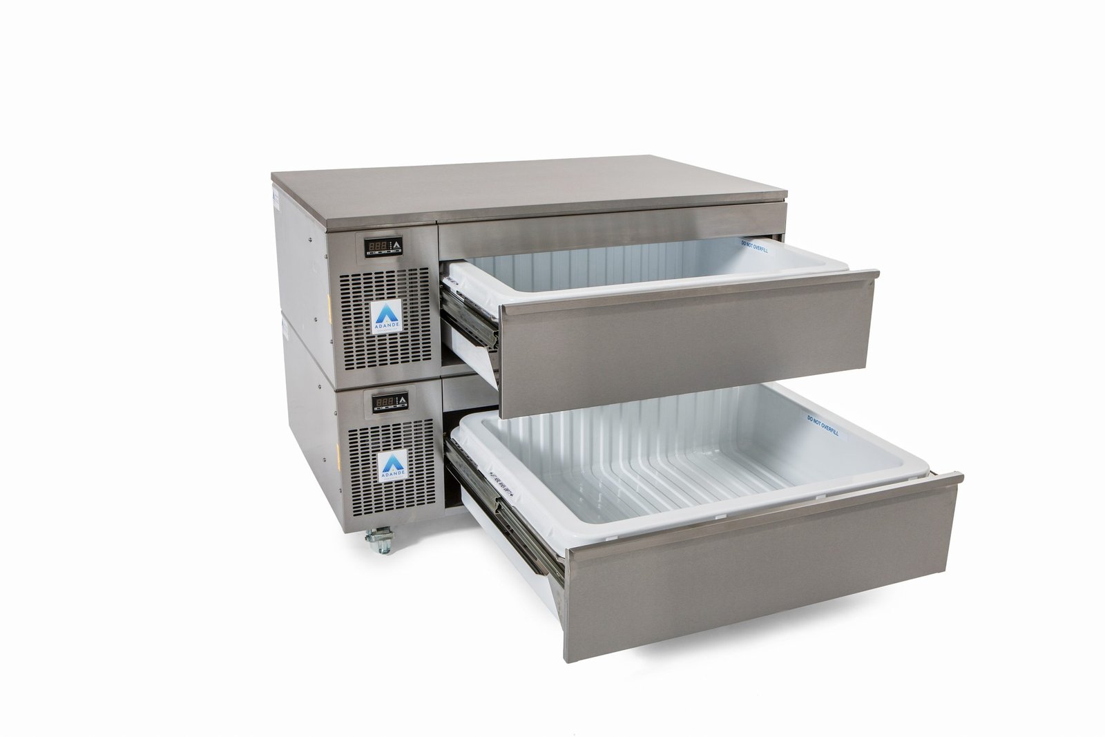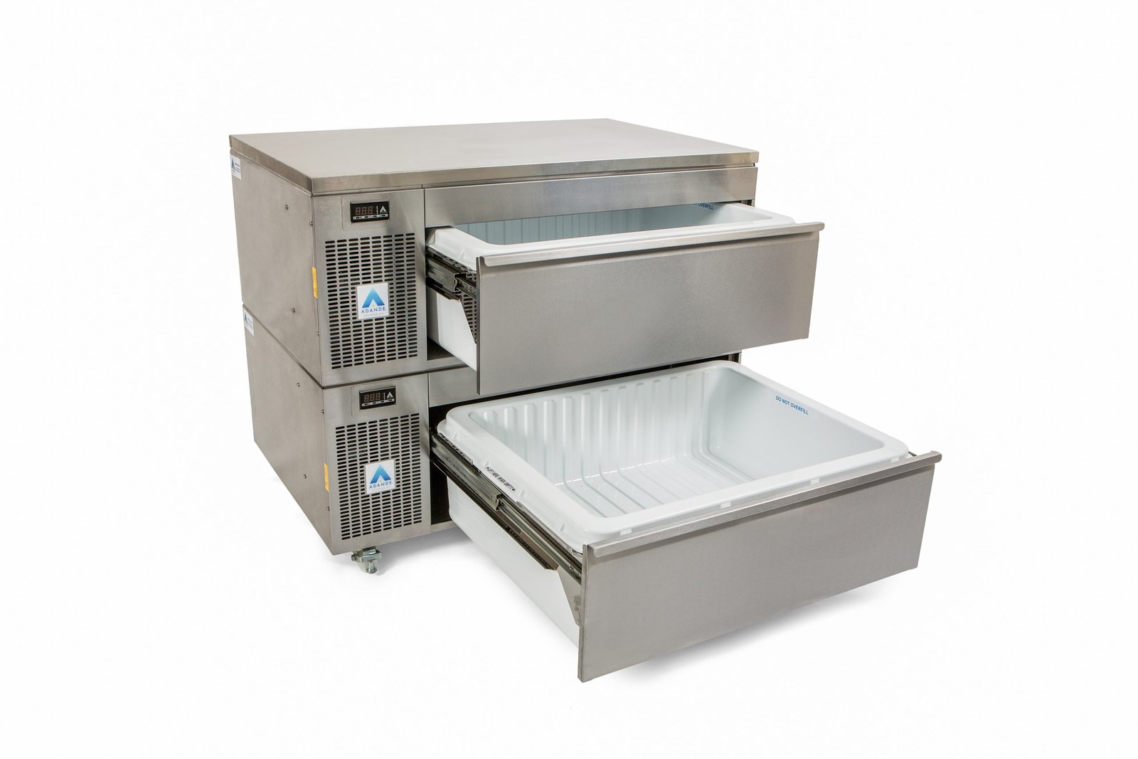 Food storage versatility is assured by the independent control of each drawer through temperature range of -22°C to +15°C, at 0.1°C increments. A+ energy rated fridge only models with a temperature range of 0°C to 15°C are also available and options include combinations with drawers at each of these temperature ranges.