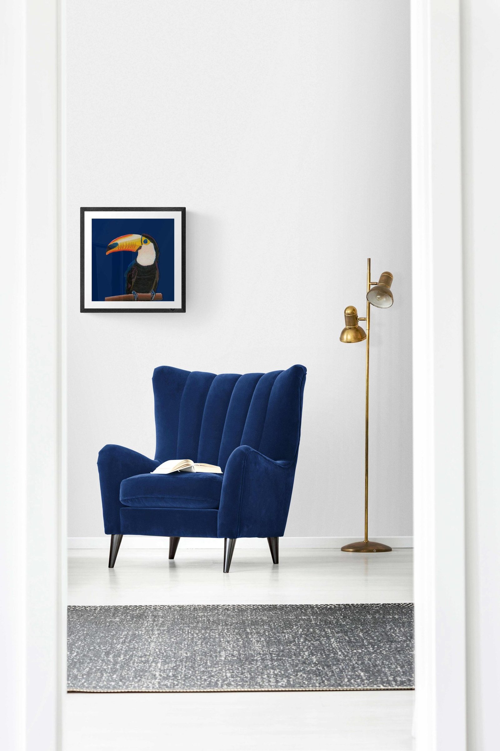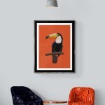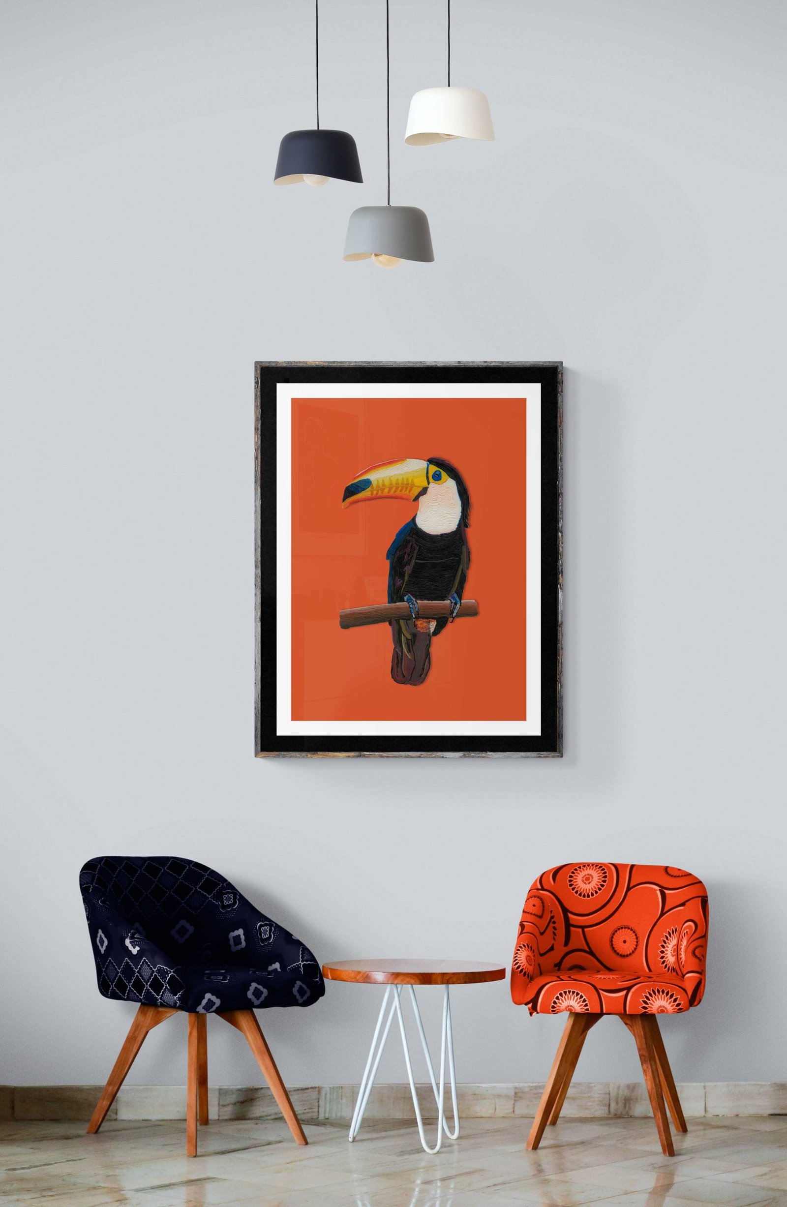 Print of Toco Toucan painted with plasticine on transparent acrylic with different background colours.