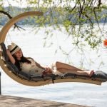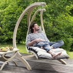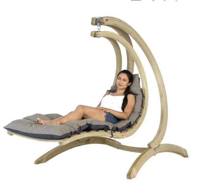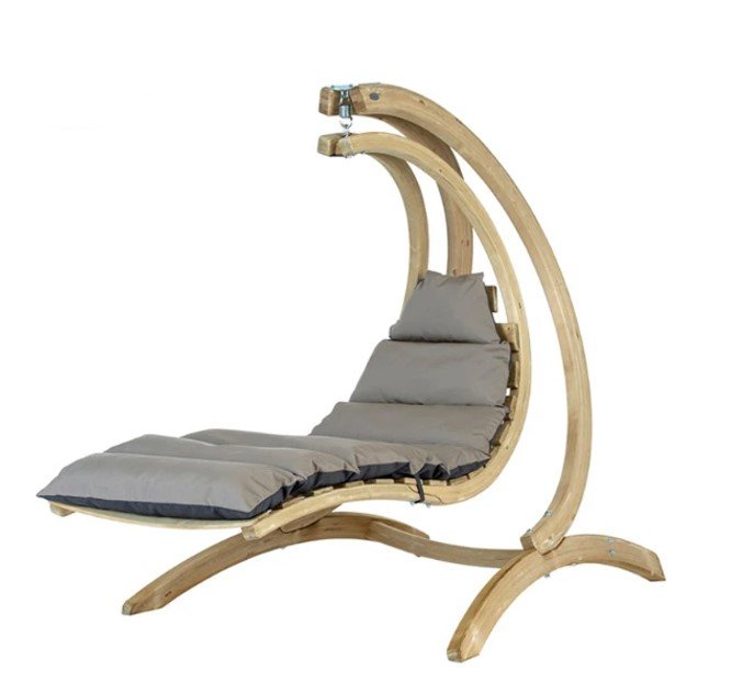 The Swing Lounger can be used either as a gently rocking recliner on the ground or as a perfectly balanced floating recliner in the Globo Stand frame.