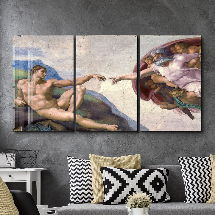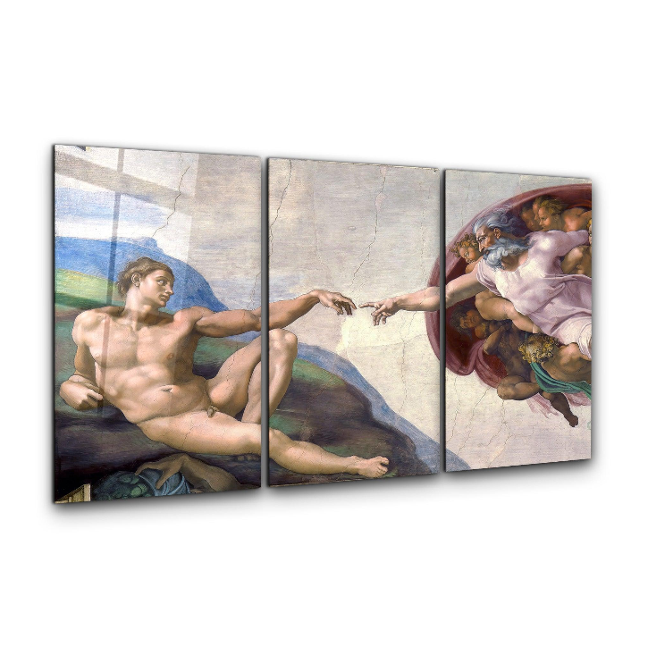 Artdesigna – ”Michelangelo – The Creation of Adam – Trio” – Glass Wall Art