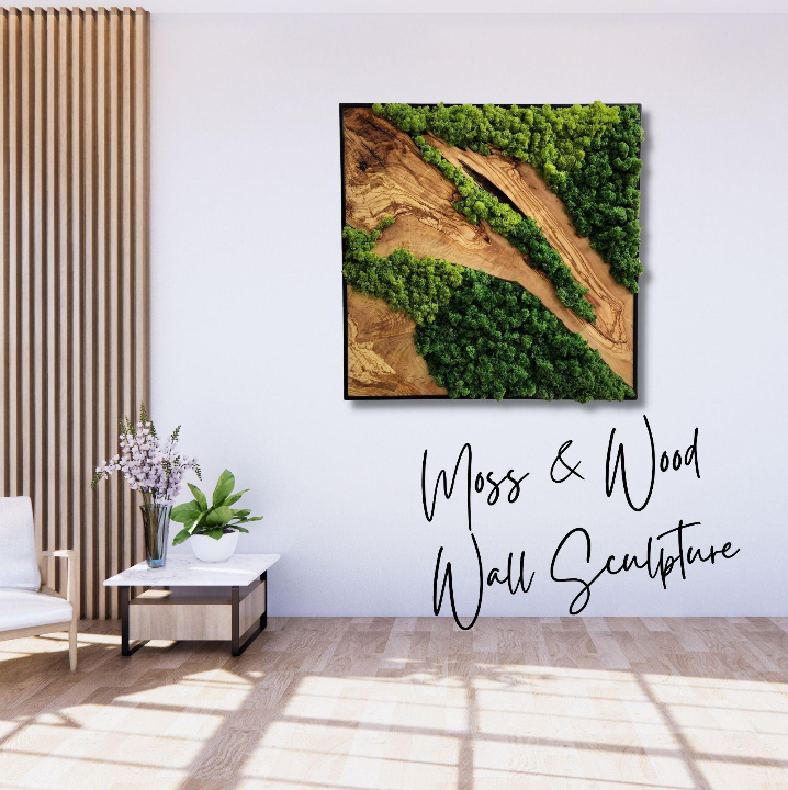 Combining natural and industrial elements, the Moss and Olive Wood series creates spectacular serenity for any space. It's a perfect wall art pick that fuses moss's wildness with olive trees' solidity. Wood's unique patterns and uneven forms allow one to unwind and contemplate nature's artwork.