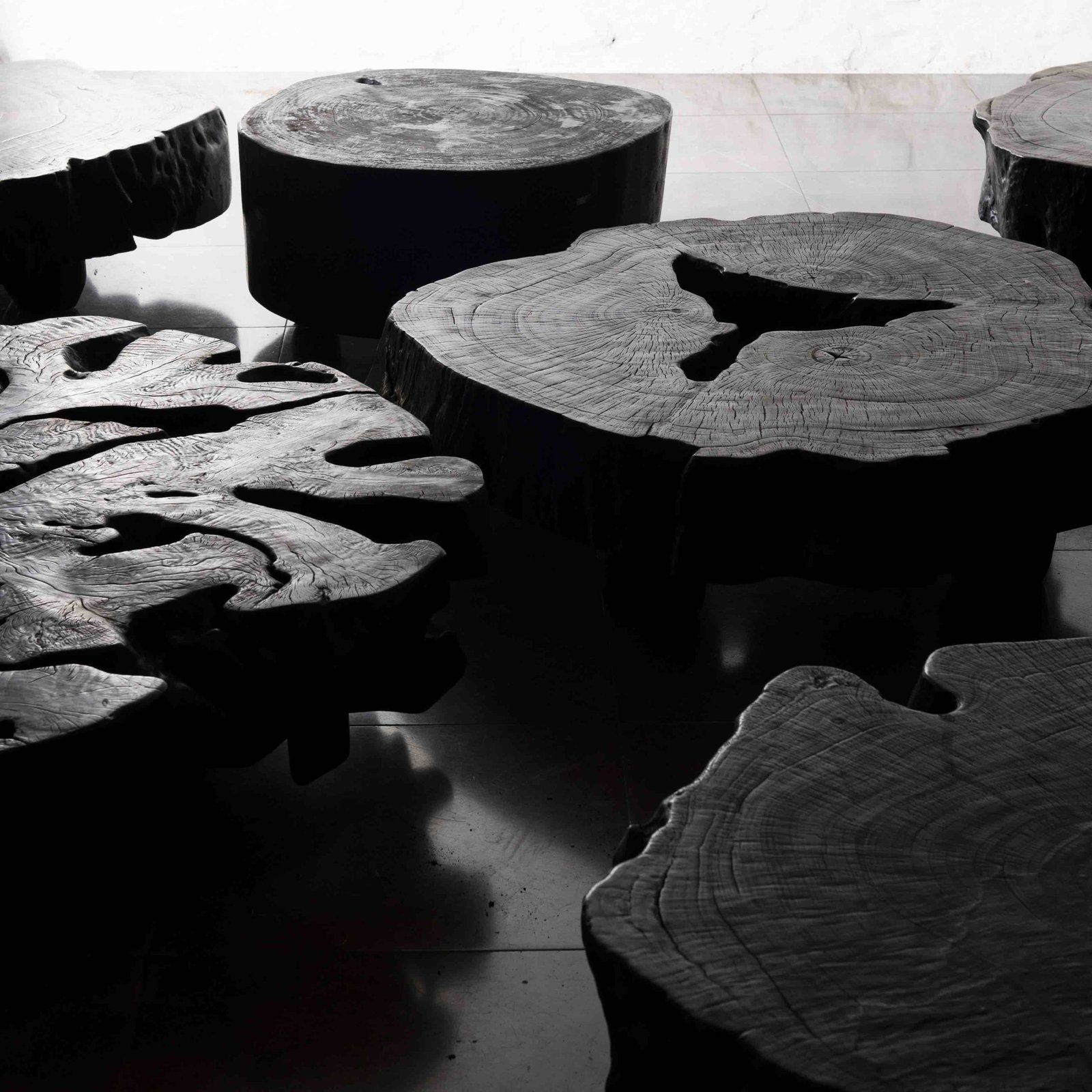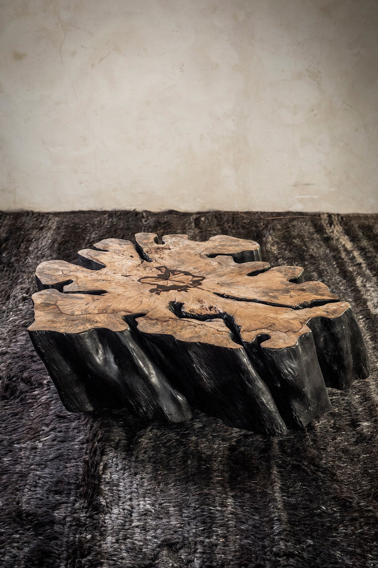 Our charred wood coffee tables, benches, consoles and dining tables are true contemporary vegetal sculptures, which invite Nature into your lounge area, restaurant or conference room...