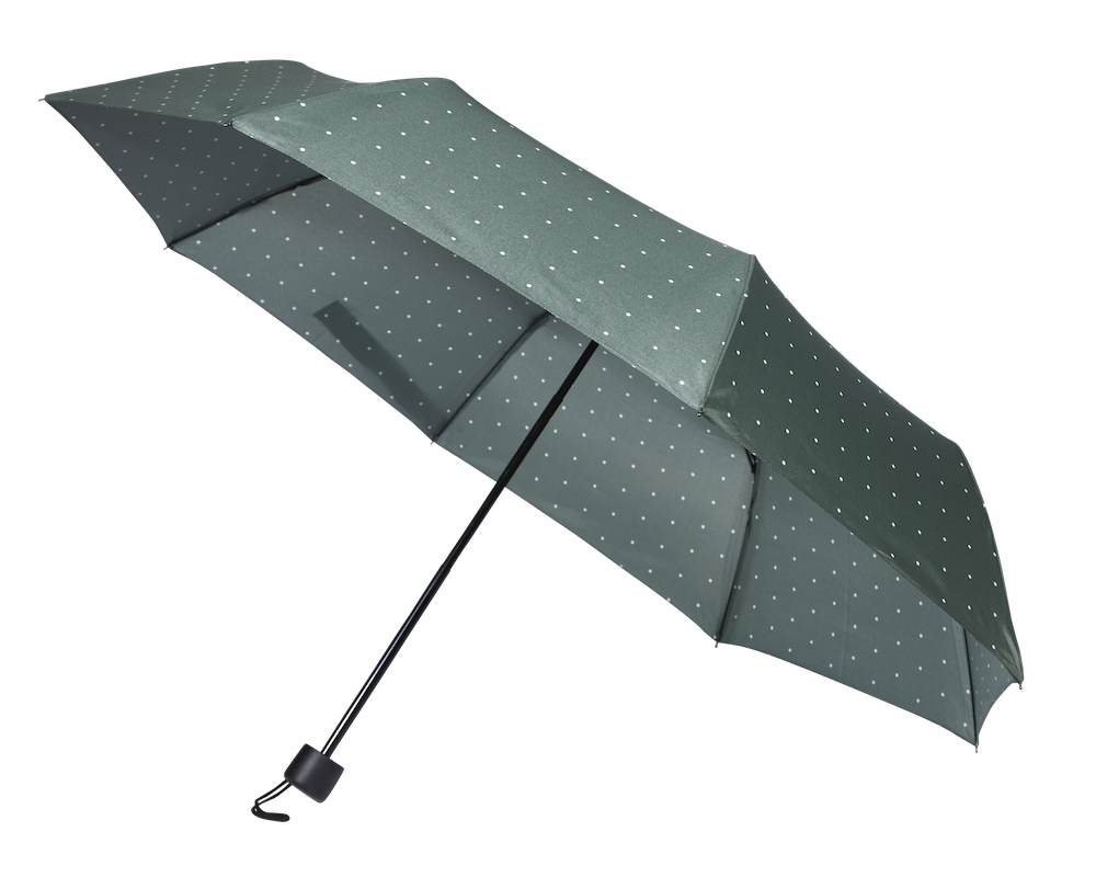 This is a small personalised umbrella with a rubber handle and manual opening. The rubber handle allows for a comfortable grip. With a manual opening, its frame is both flexible and stable, making it windproof.