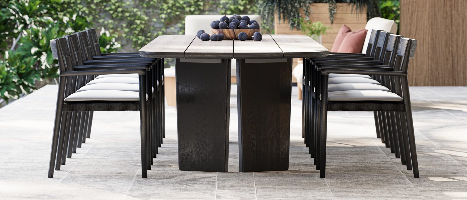 Messina’s tables, crafted from natural and black teak, showcase a beautiful interplay of colors and organic shapes. This collection offers a natural look that enhances the aesthetic appeal of outdoor spaces. Messina’s thoughtful design ensures that each piece integrates seamlessly into its surroundings.