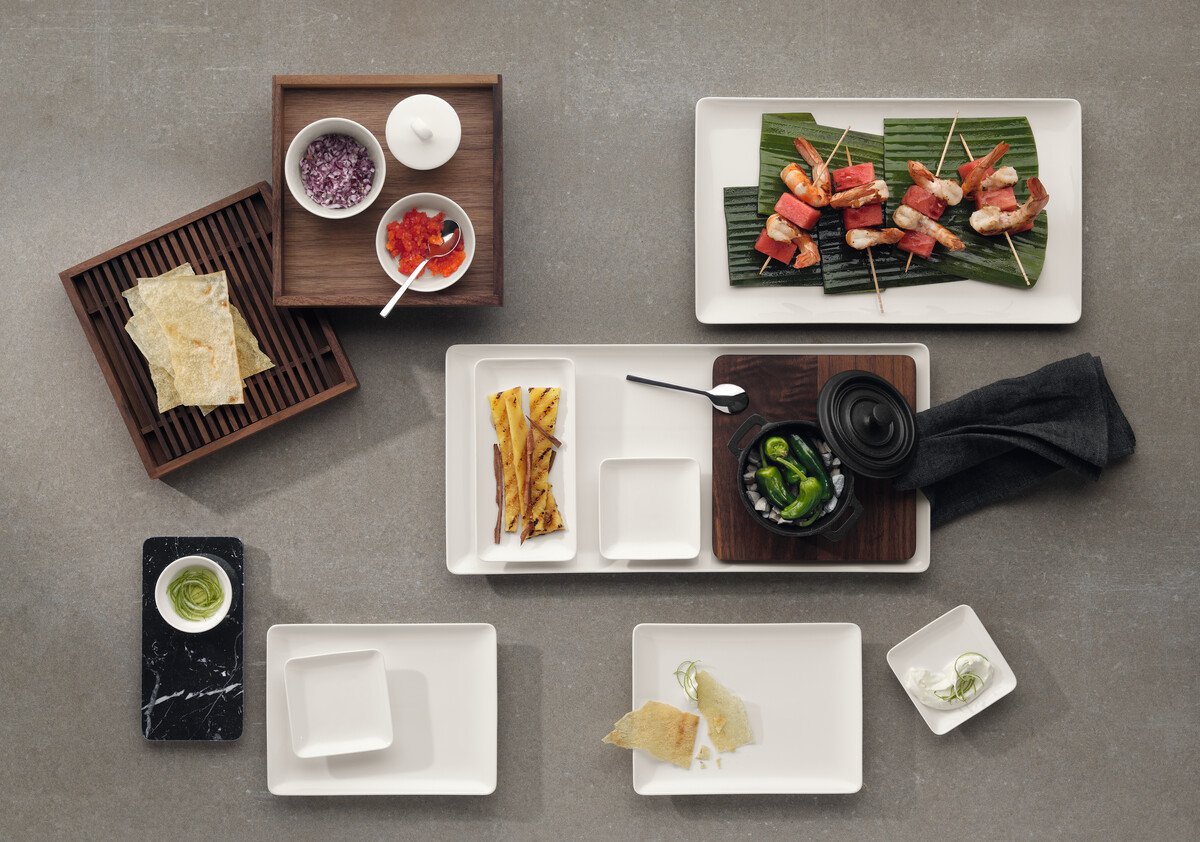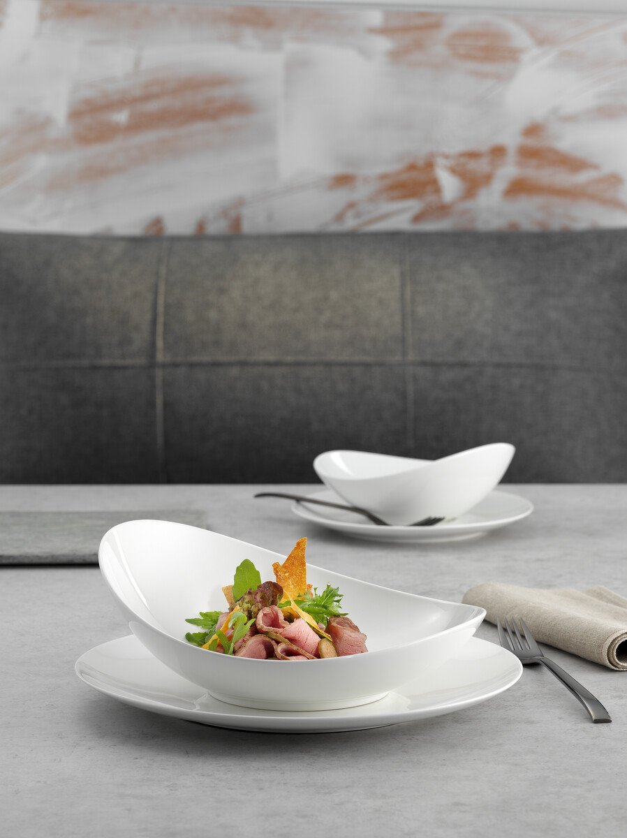 At the table, it becomes clear how varied culinary ideas can be staged with PURTIY. Elegant, round rim plates, oval platters and bowls in various designs form the basis of your tableware. On the fine COUPE plates and platters, the filigree of the Noble China body is particularly visible. Purity Square presents food appetizingly in the smallest of spaces. The plates and platters with precisely coordinated lateral dimensions can be grouped together to save just as much space at the buffet as at the table. Completed with Purity Specials, the highlight items.