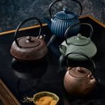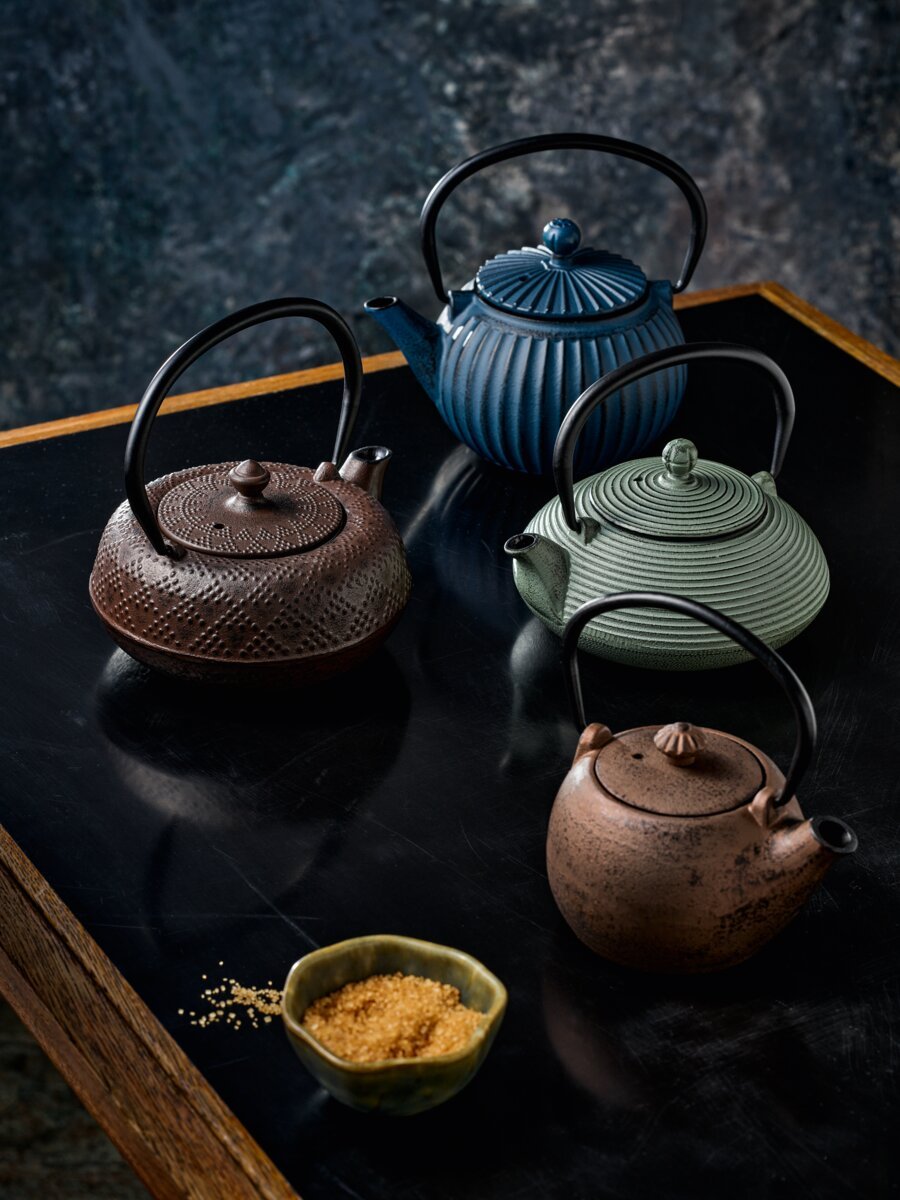 These cast iron teapots in bronze, sage, brown, and blue are not only stylish but also versatile. With their hammered or ringed finishes, they make a real design statement – and yes, cast iron is on trend!