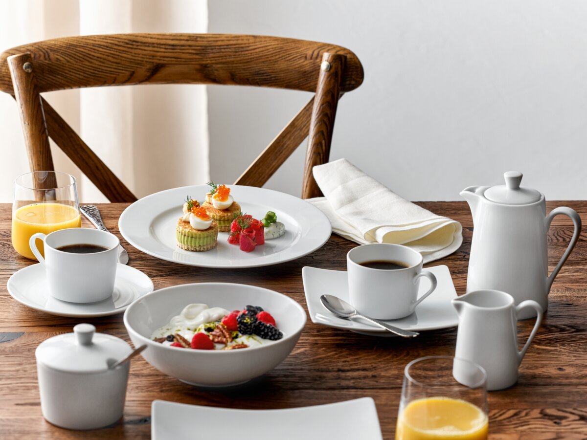 The unique range of the FINE DINING collection with its mix of square and round items offers endless possibilities for creative combinations. It invites you to Experiment freely and create individual presentations. The clear, timeless aesthetics of FINE DINING unfold their charm on a classic tablecloth as well as on a modern wooden tabletop.
