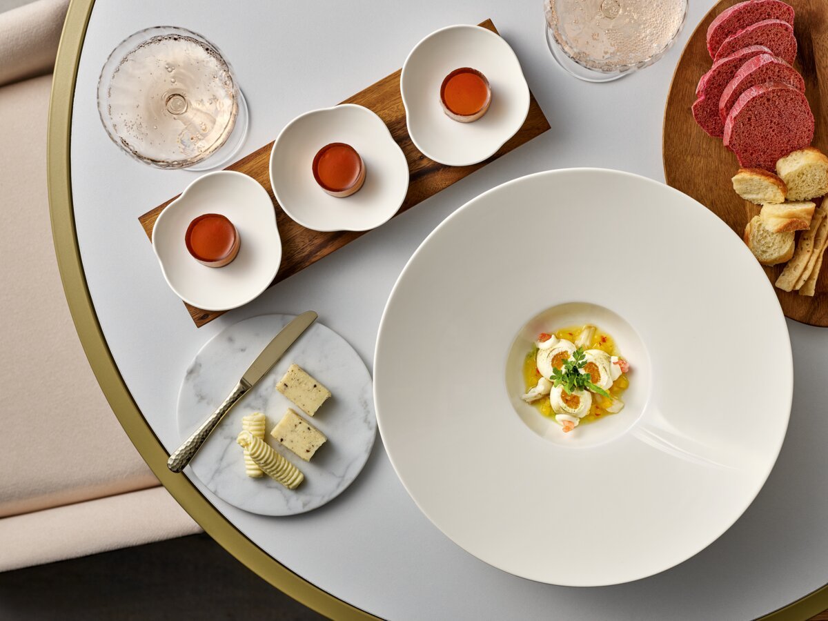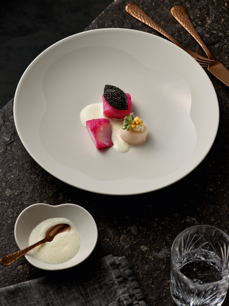 The KUMO collection offers a special dining experience for the ambitious top gastronomy and hotel industry. Designed for visually and culinarily demanding guests and chefs, the versatile range of items covers the entire menu, offering a harmonious interplay of round, extraordinary and novel amorphous shapes.