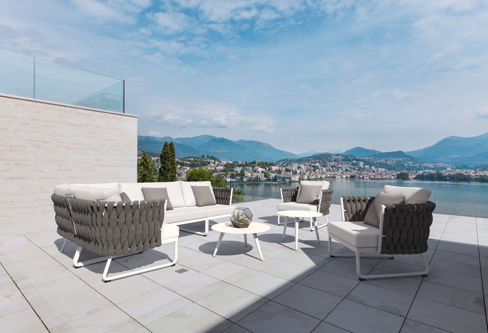 Soft olefin fabric encompasses our special outdoor foam, which we also use for the upholstery. The beauty and cosiness of this collection cannot be spoiled by water or weather. Whether for eating, resting or even working, with Como, everything becomes a pleasure.
