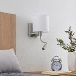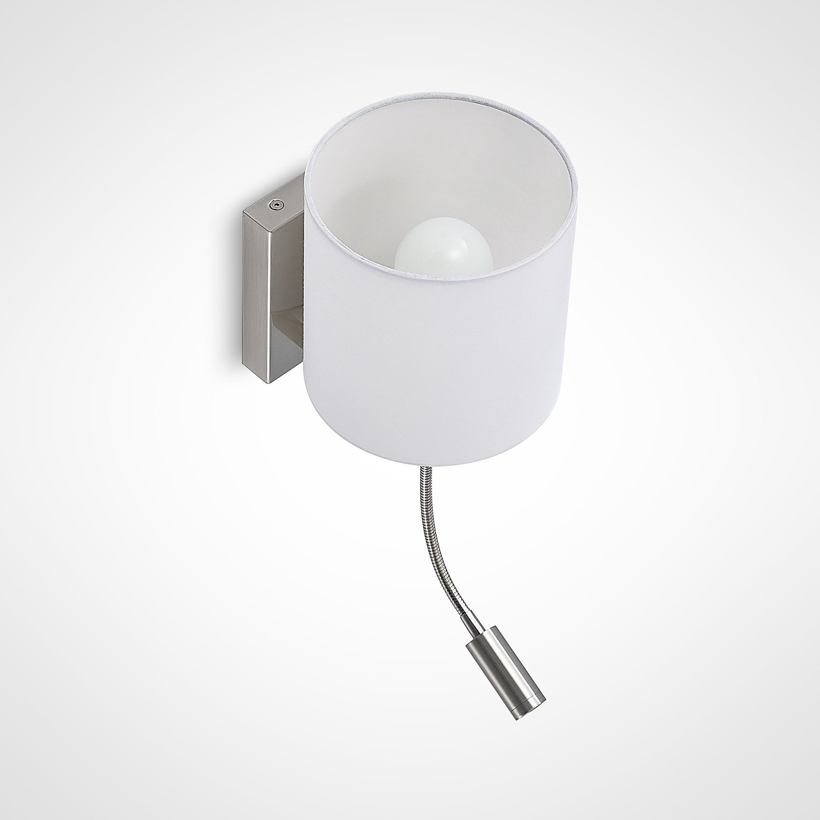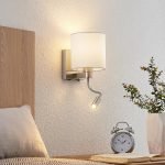 Brinja - modern wall lamp with flexible LED reading light and white textile shade