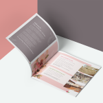 We are the brochure design experts! Sizes include our popular 210mm square booklets and 150mm square 6 or 8 panel roll folded brochures. We can offer a range of stunning print finishes including foiling, spot UV, gloss, matt or soft touch laminated covers and with or without a flap for inserts. We have a range of design templates to choose from or we can design something bespoke, especially for you.