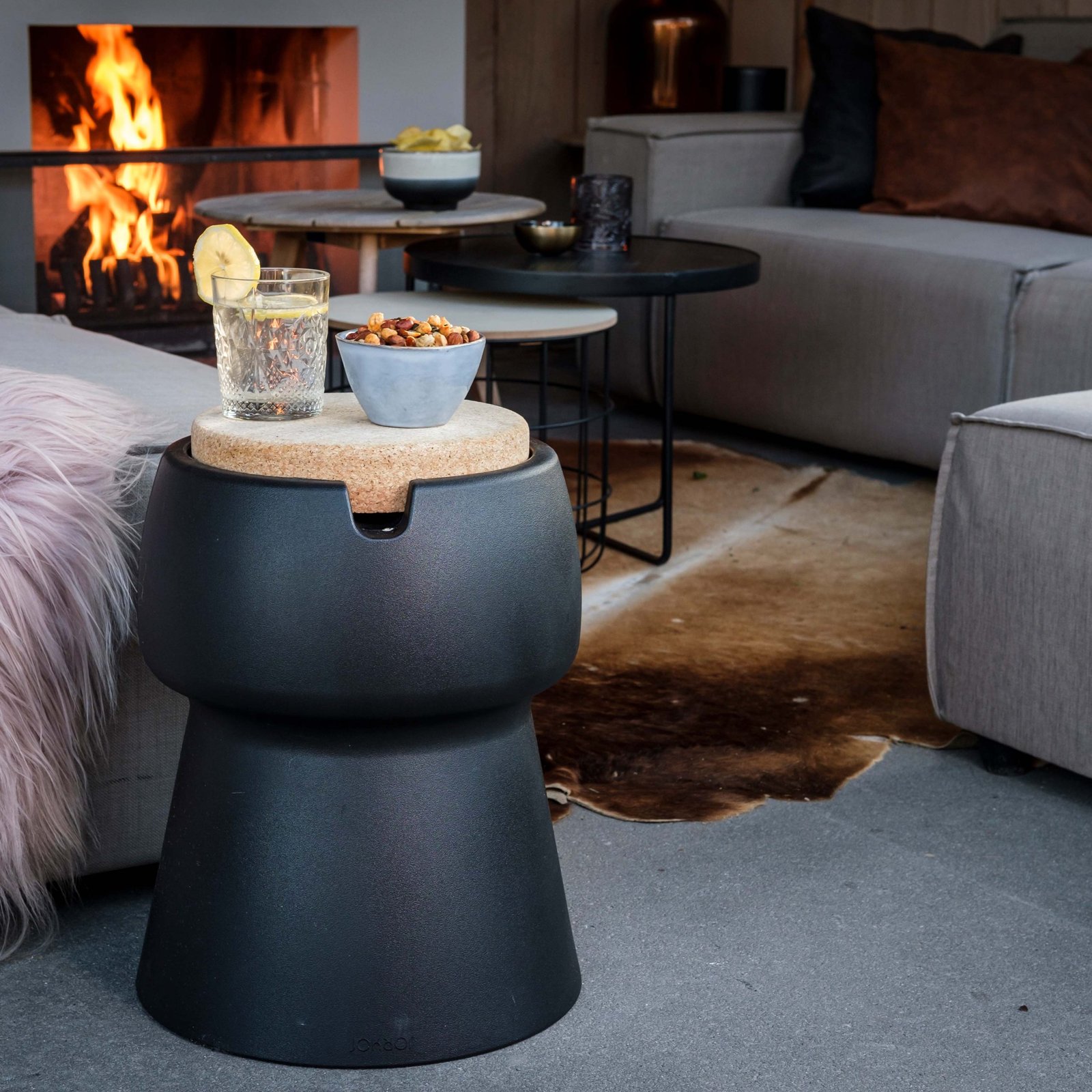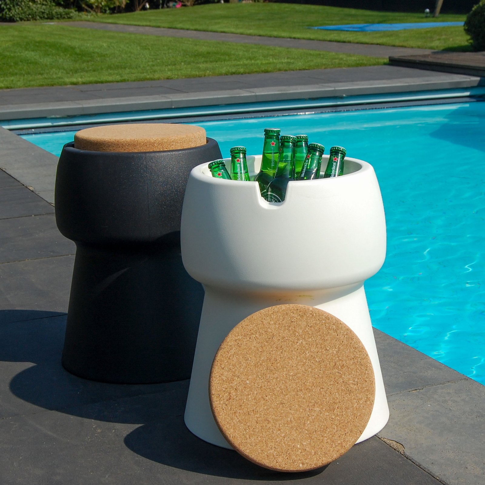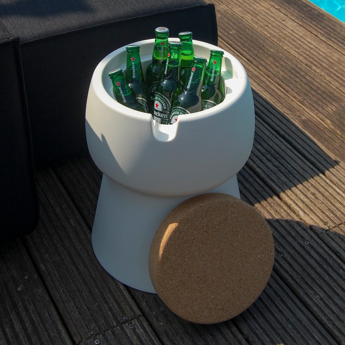 Meet the Champ Coolstool: an elegant and practical wine and champagne cooler in the shape of a cork. This eye-catching cooler not only keeps your drinks at the perfect temperature but can also serve as a side table, stool, or even a footstool.
