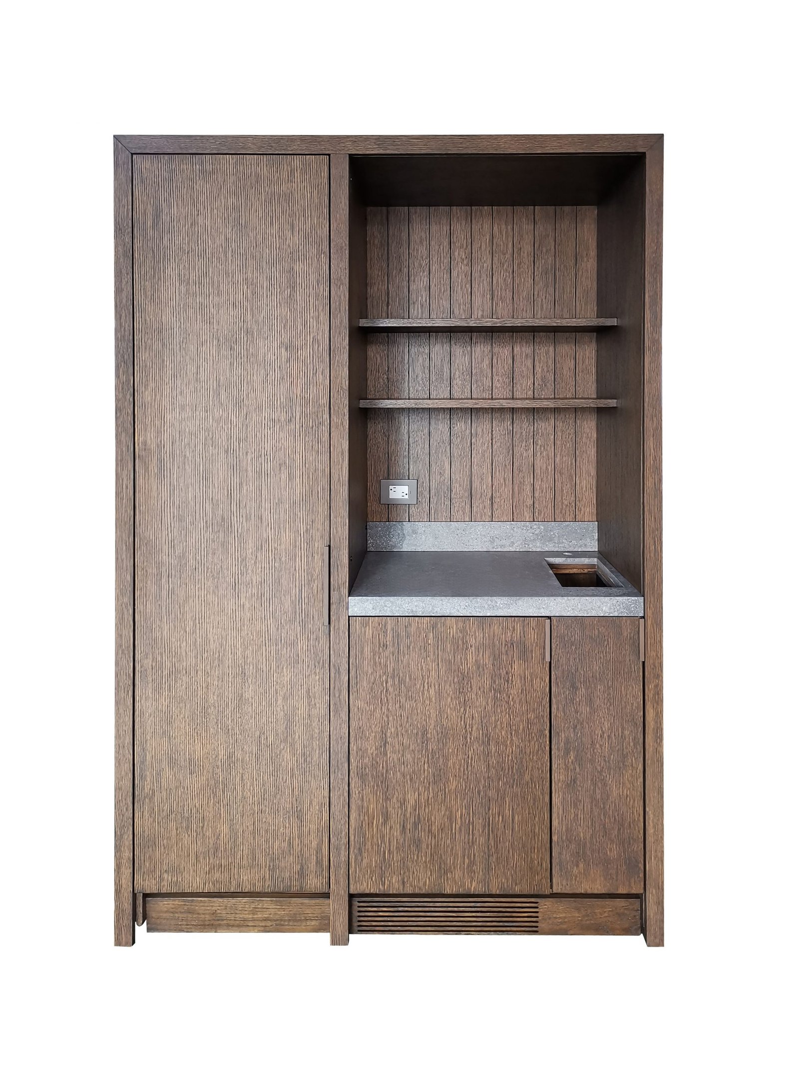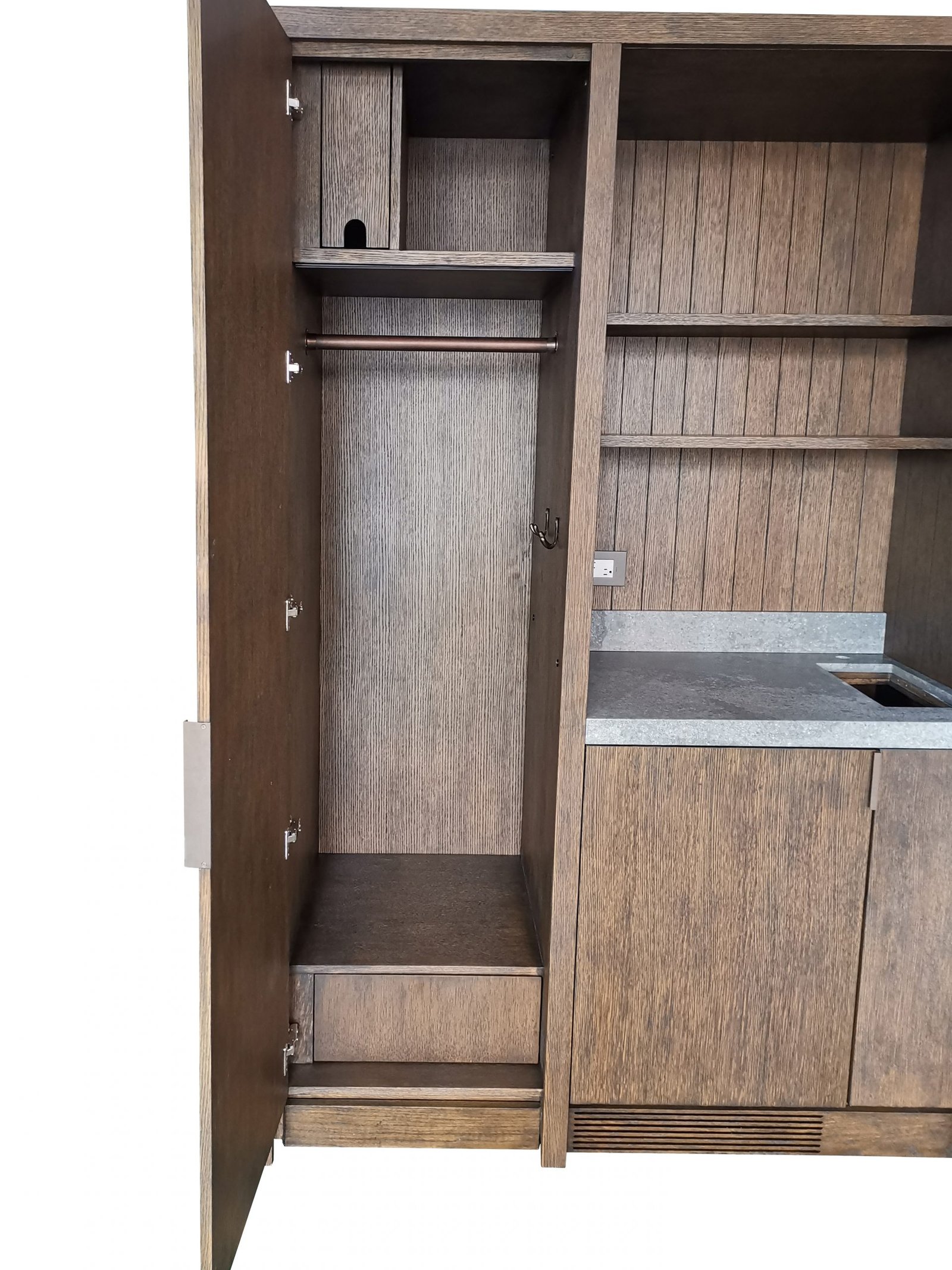 Closets for hotels can be "stand alone" or "built in", we do both. Every closet is custom manufactured to meet the clients space, equipment needs, lighting requirements, and signature brand design.