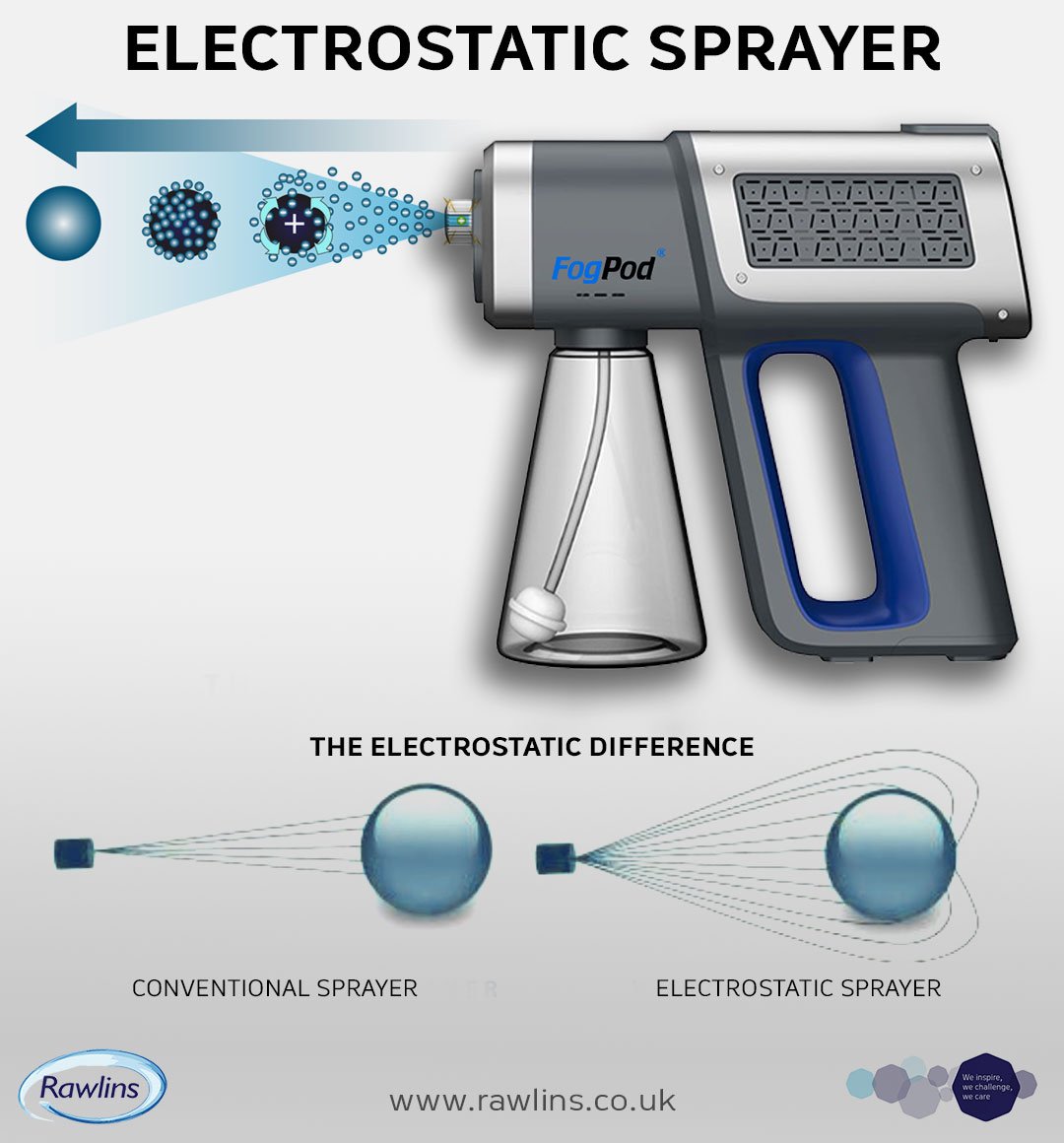 FogPod Pro Max uses electrostatic technology to make it easier and more efficient to bond your chosen solution to a surface.