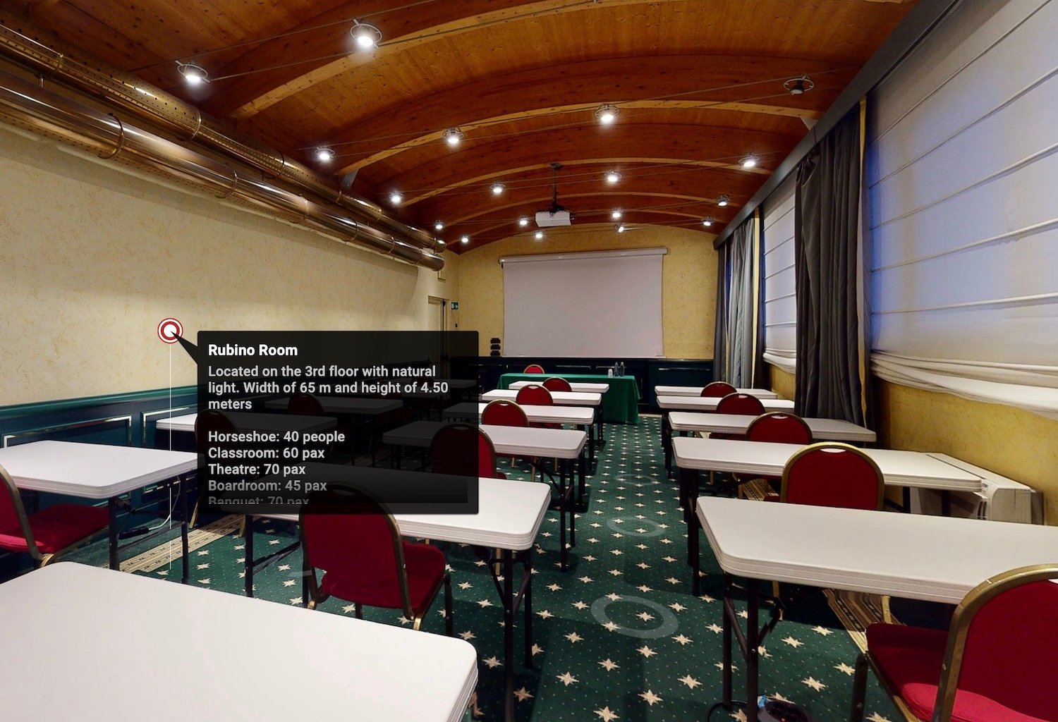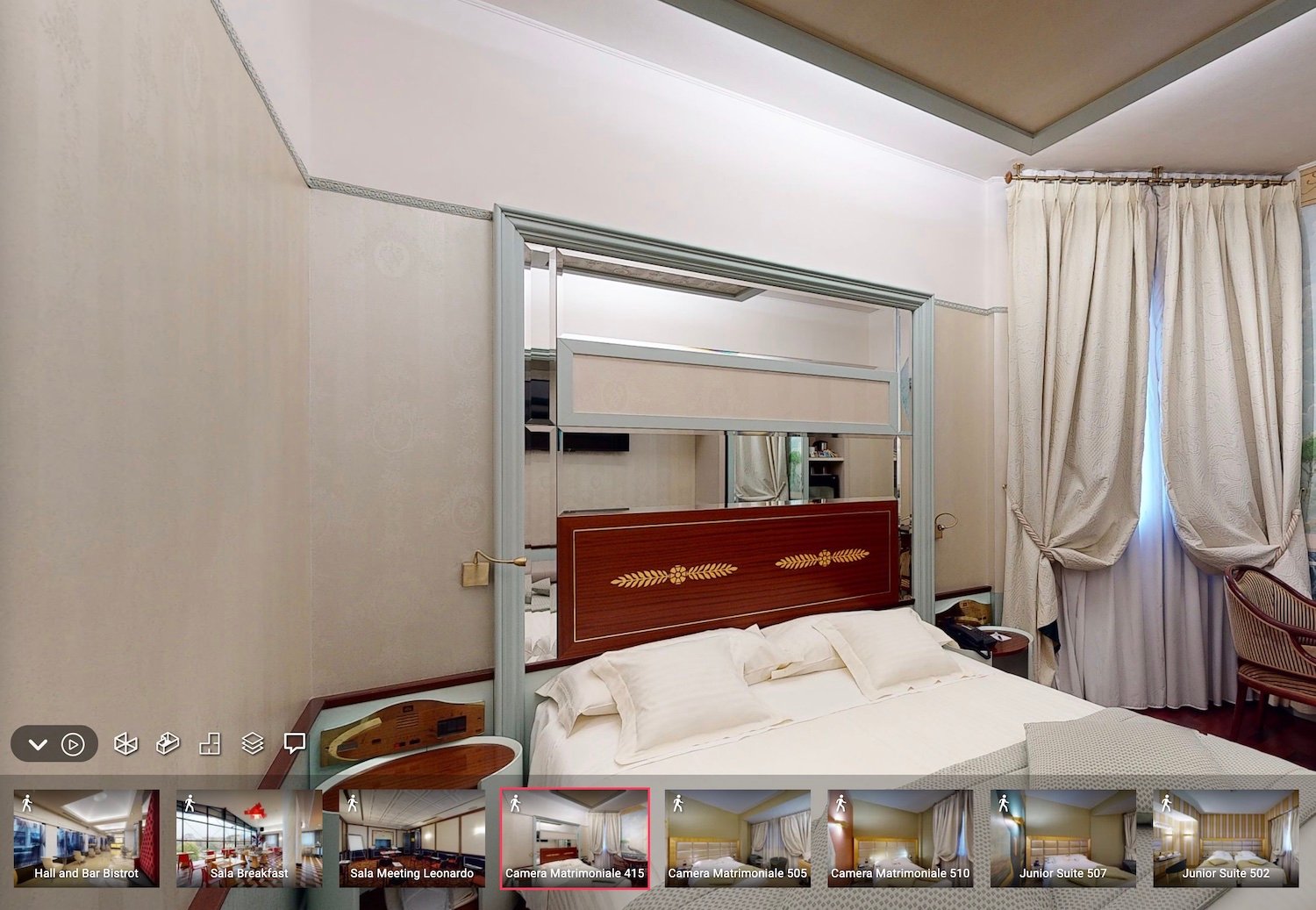 A virtual tour can offer more information than in a real visit to the location, thanks to some digital functions: description tags, floor plans, multimedia contents integrated into the virtual visit.