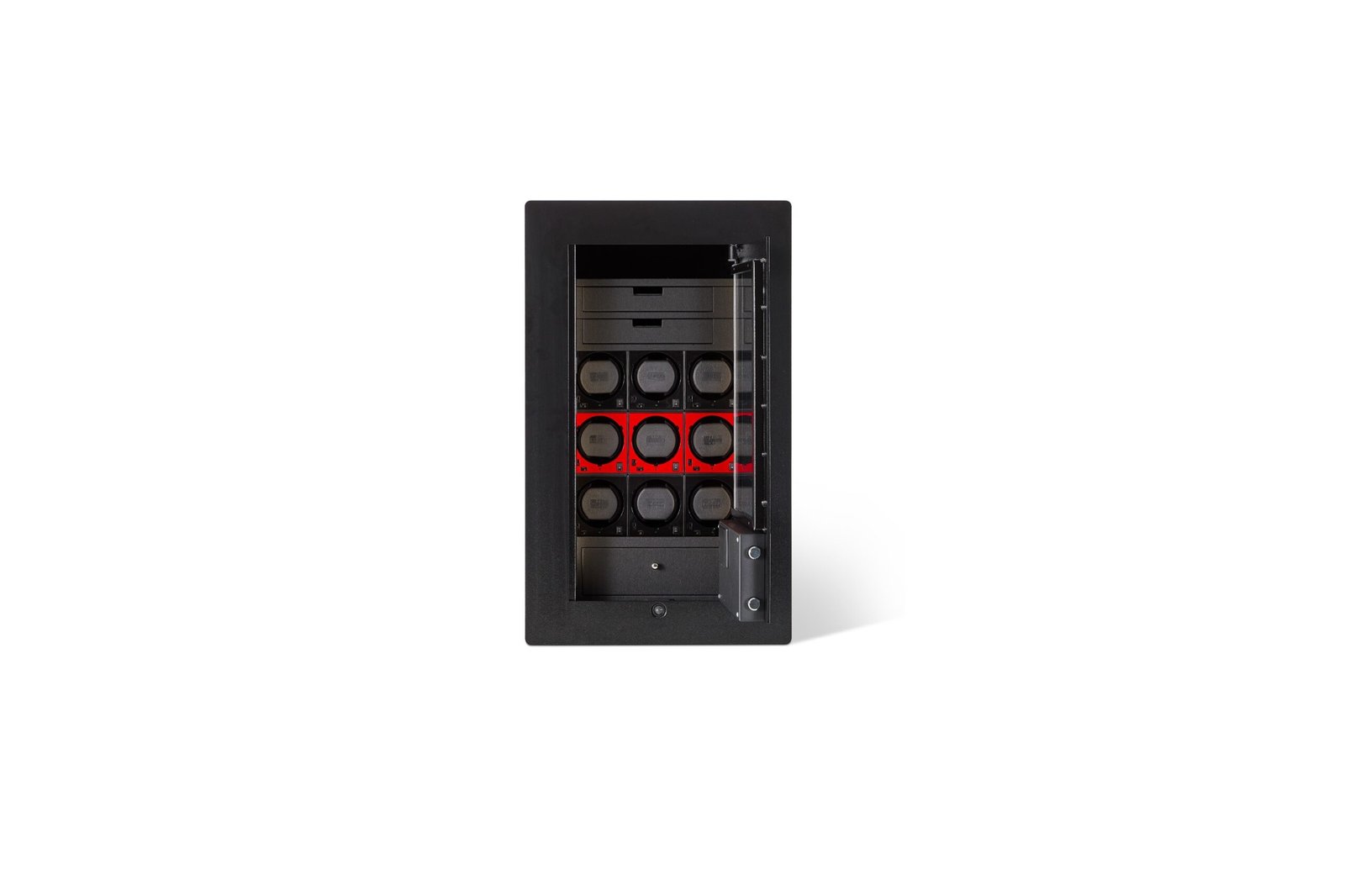 Ideal for luxury hospitality, residential, and commercial settings, the Display Door BlumSafe features a modular interior layout for purposeful organization, solid steel construction with a polycarbonate window (with an opacity feature) for dependable security, and architectural detailing that elevates the surrounding space. Its transparent display door transforms the safe from a concealed utility into a considered design element, making it a sophisticated statement solution for high-end interiors.