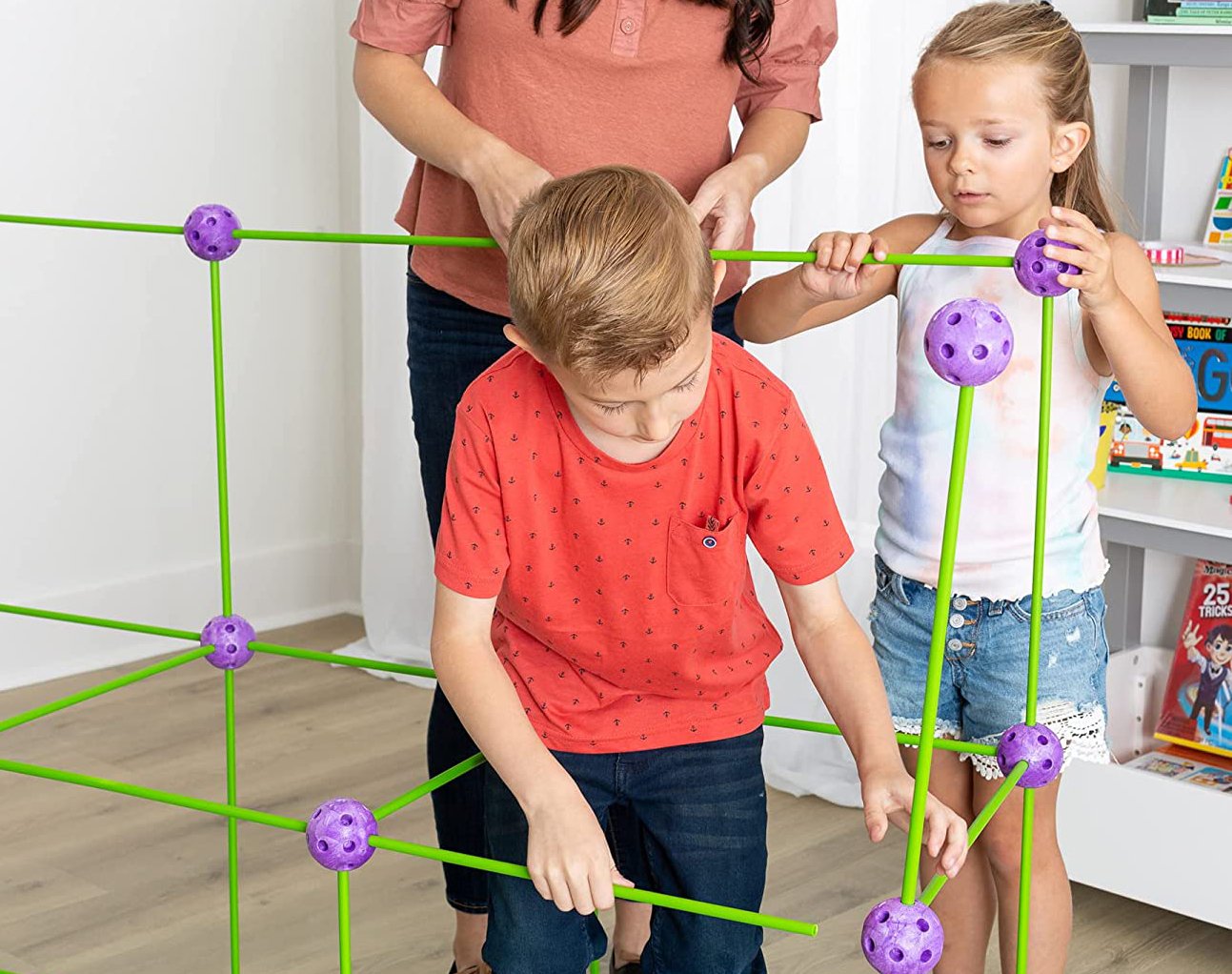 They're fun to make into different items, giving kids a place to spend time in their own unique world. Crazy Forts! help make play time easy and fun. Simply connect the balls and sticks and cover the structures with bed sheets to create places where imaginations flourish.