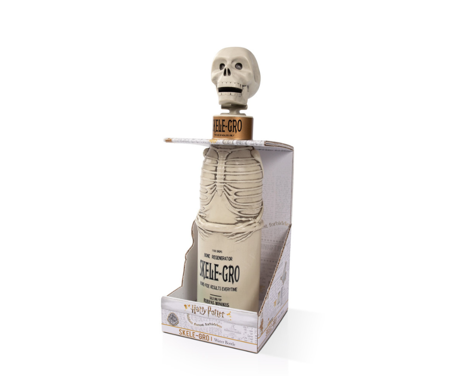 Skele-Gro bottle as seen in Harry Potter and the Chamber of Secrets. Holds up to 300ML of water or juice with functioning skull screw top. Movie accurate: The Skele-Gro water bottle has been replicated using laser scanning technology of the original movie prop. Harry Potter fans and collectors will appreciate the detailing and accuracy of the Skelo-Gro water bottle.