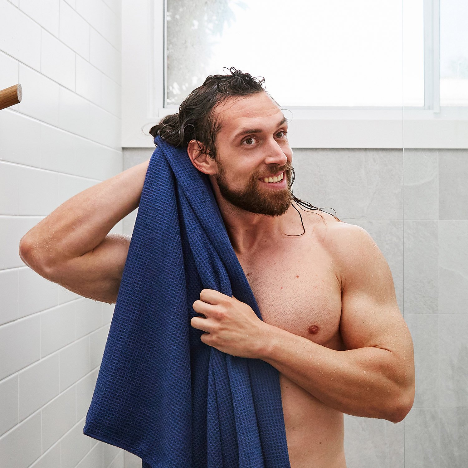 Cosy bath towels, made from super soft, sustainable waffle material. Dries 2x faster than regular cotton while providing spa day-style comfort.