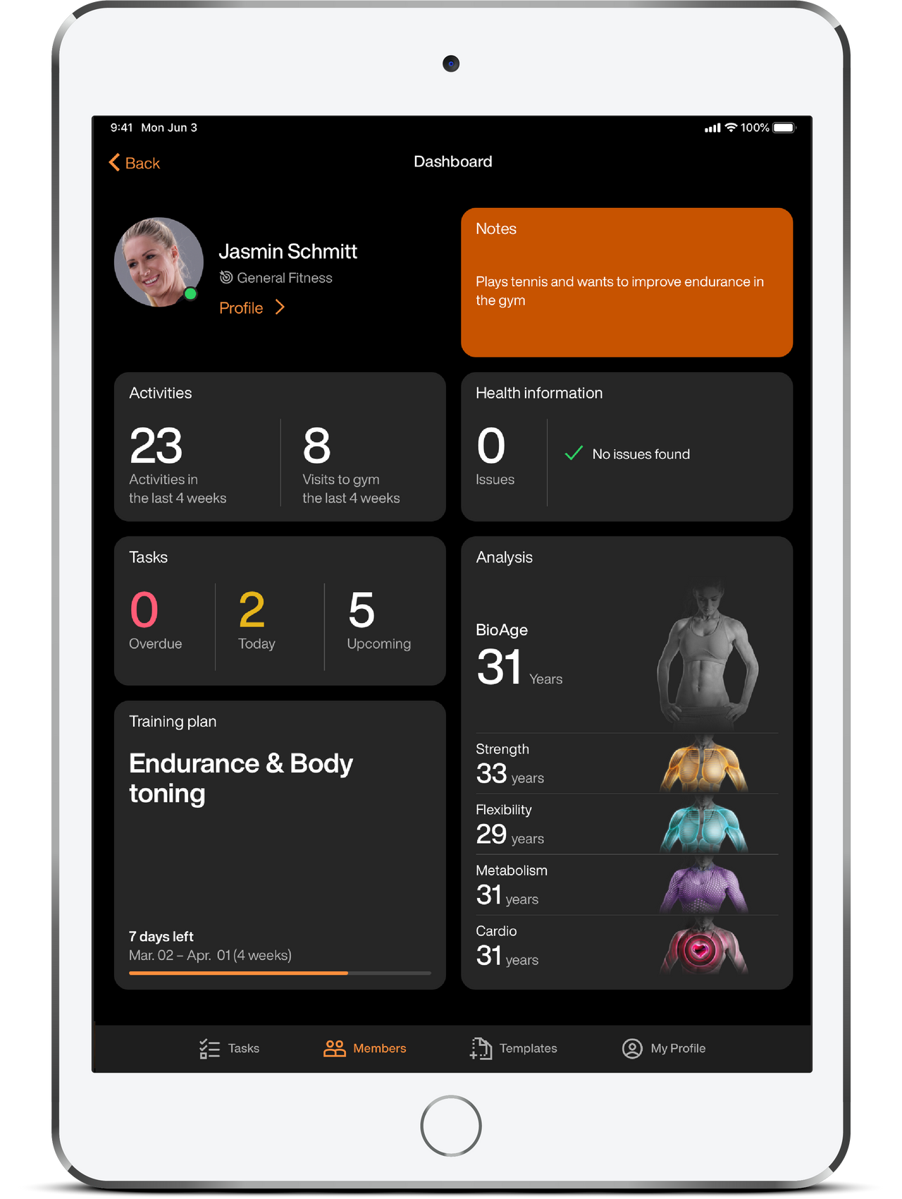 Member profile, dashboard & activity feed