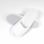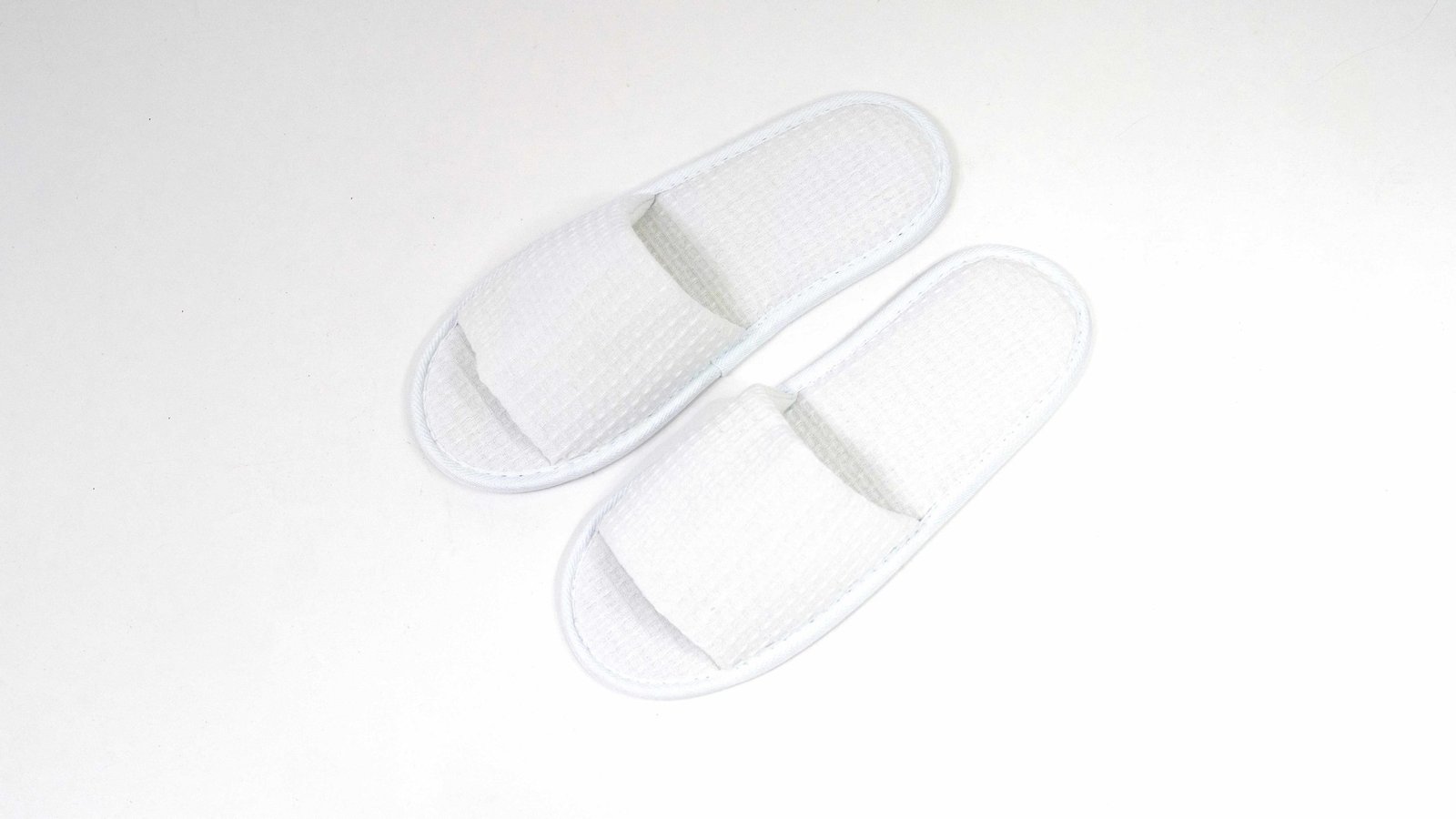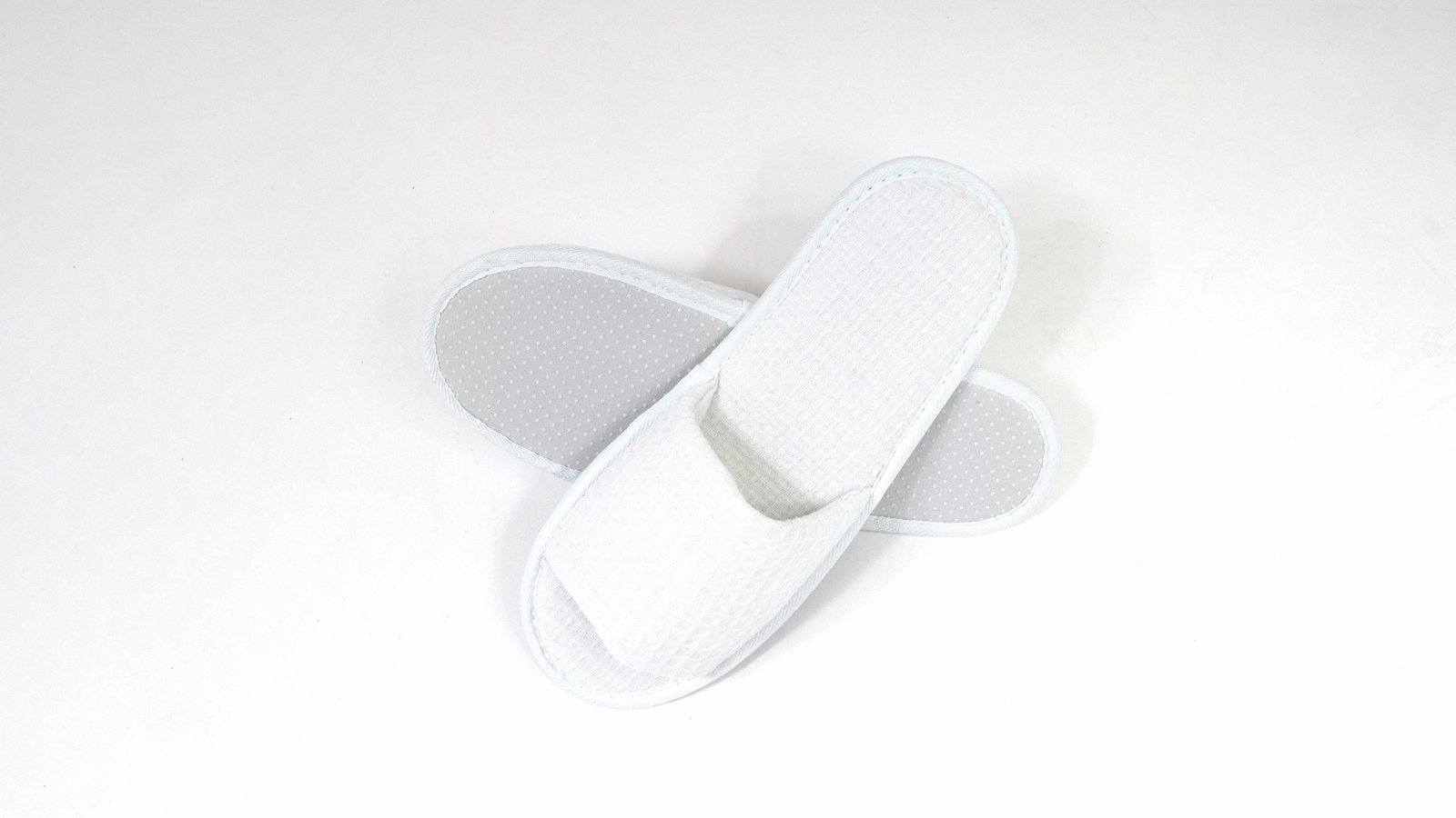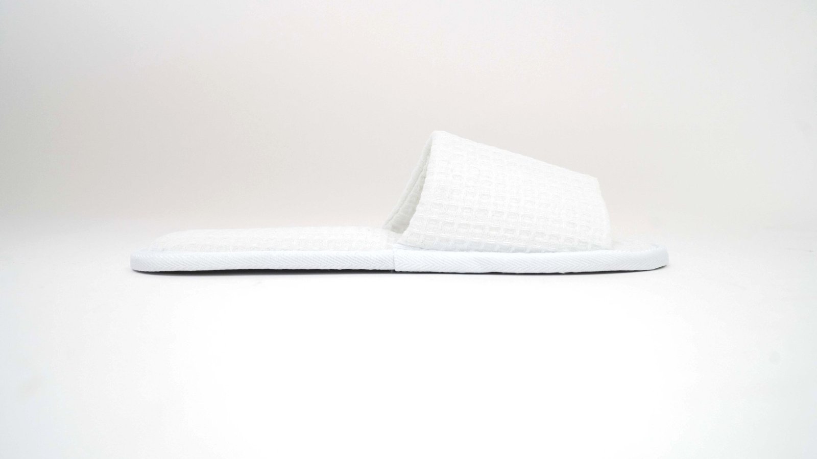 Waffle Weave Open-toe slipper with a nonslip, dotted sole. Multiple colors, embroidery, and printing are available. Labels and piping can be added. Packaging options include customized woven or plastic bags. Bring the luxury of world-class hotels to your guests with Escarra Waffle Luxury Slippers. These ultra-soft, classy slippers are perfect for comfort and relaxation and will give your guests a feeling of luxurious refinement. Personalize your slippers with your logo with our embroidery and printing options. Made from the highest quality materials, these slippers will surely be a favorite among your guests.