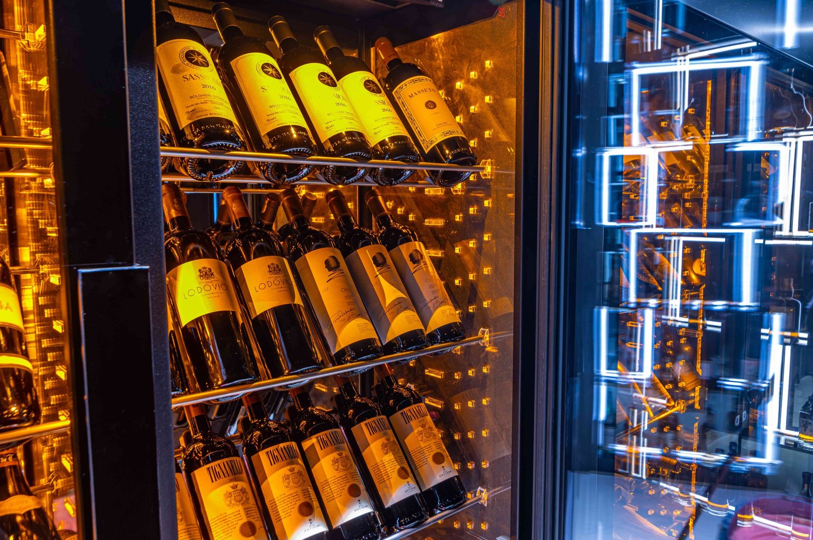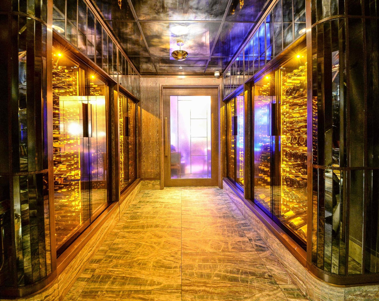 The LEDs installed along the walls diffuse amber lighting to tastefully display your best labels without compromising the wine’s quality.
