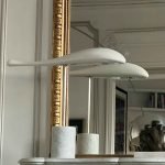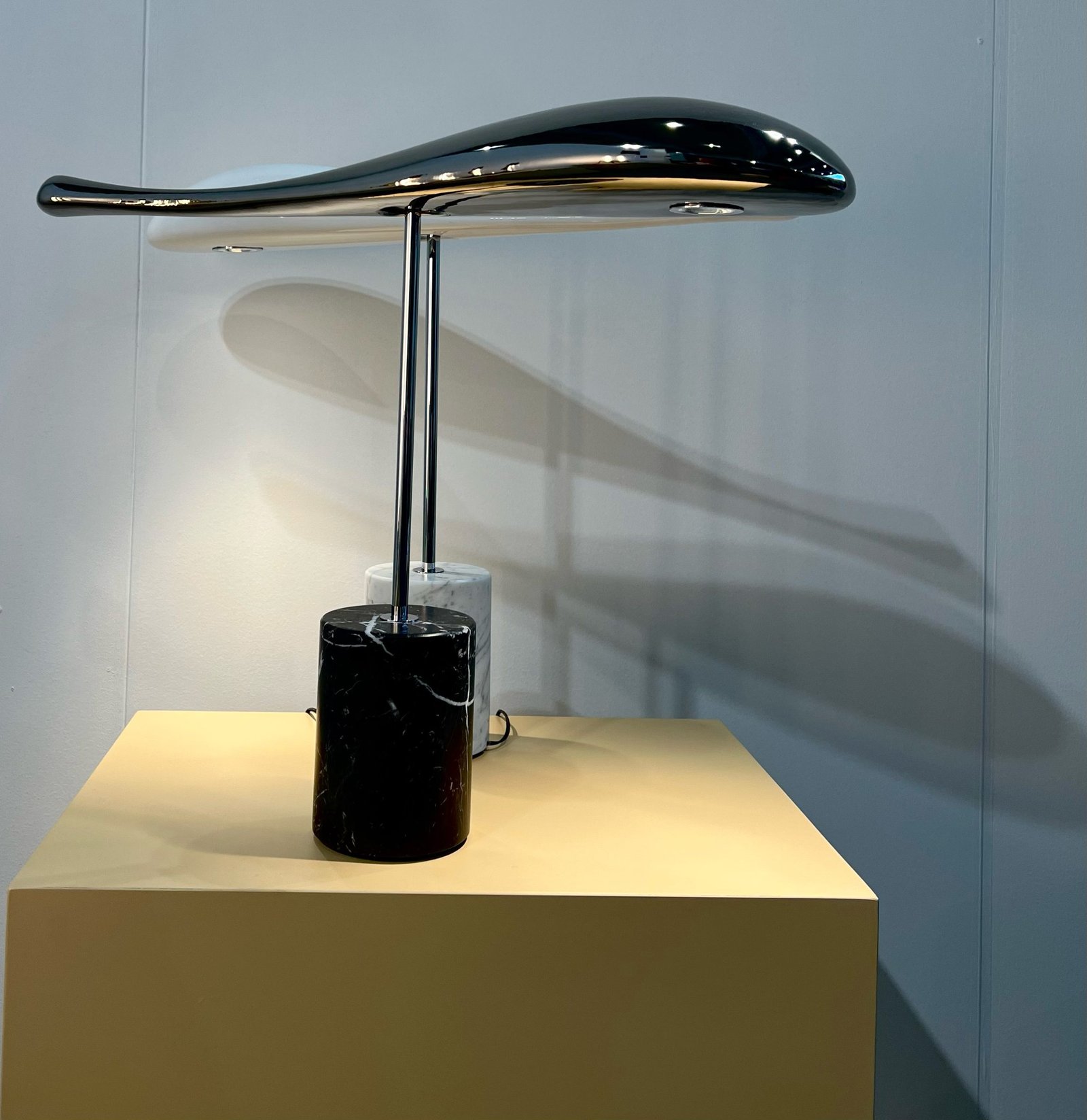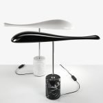 At the sight of this lamp, we have a feeling of weight and lightness, of balance and imbalance, of immobility and levitation.