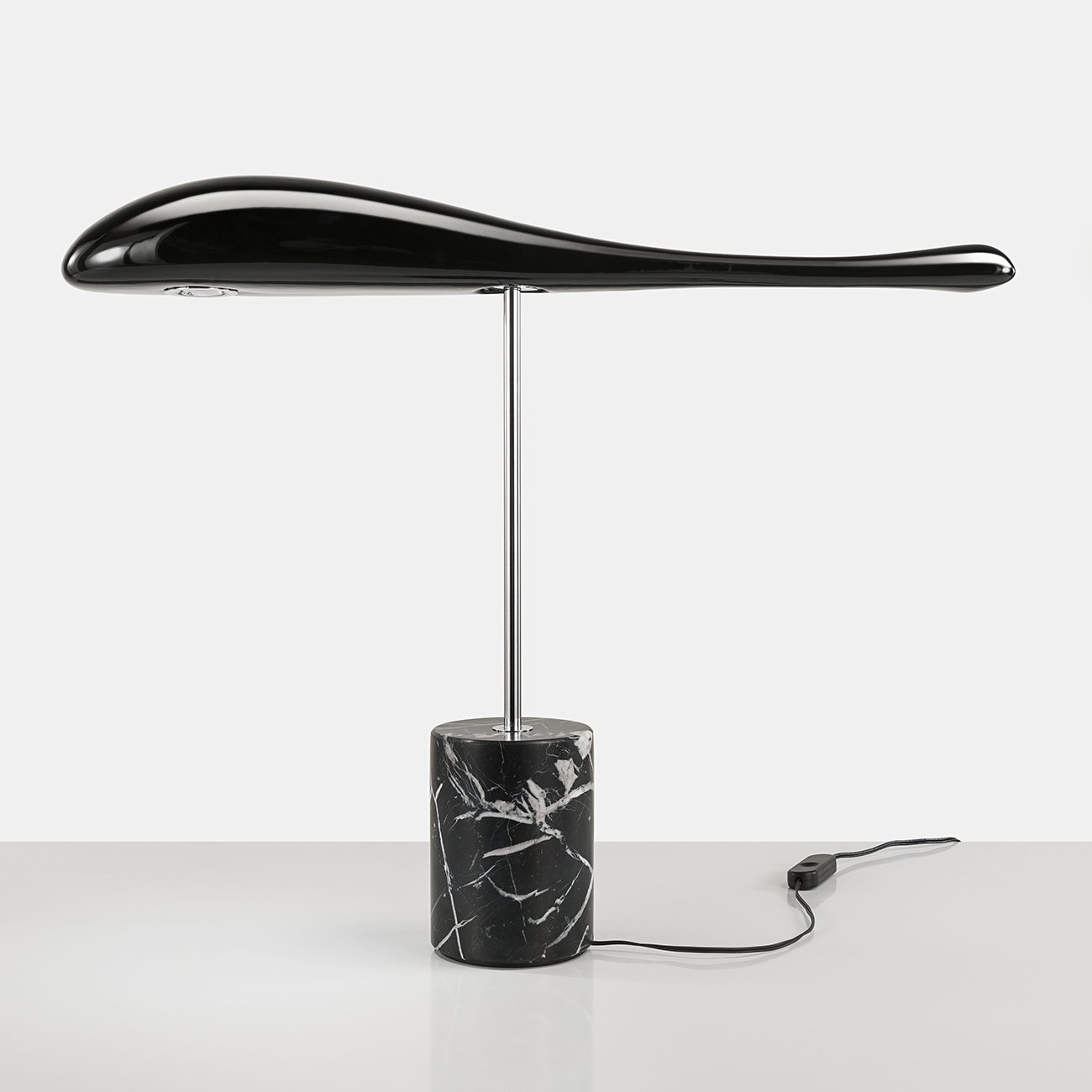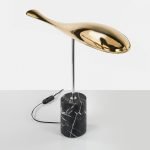 The black, chrome and gold colors are available with a black Nero Marquina marble base in a matte finish.