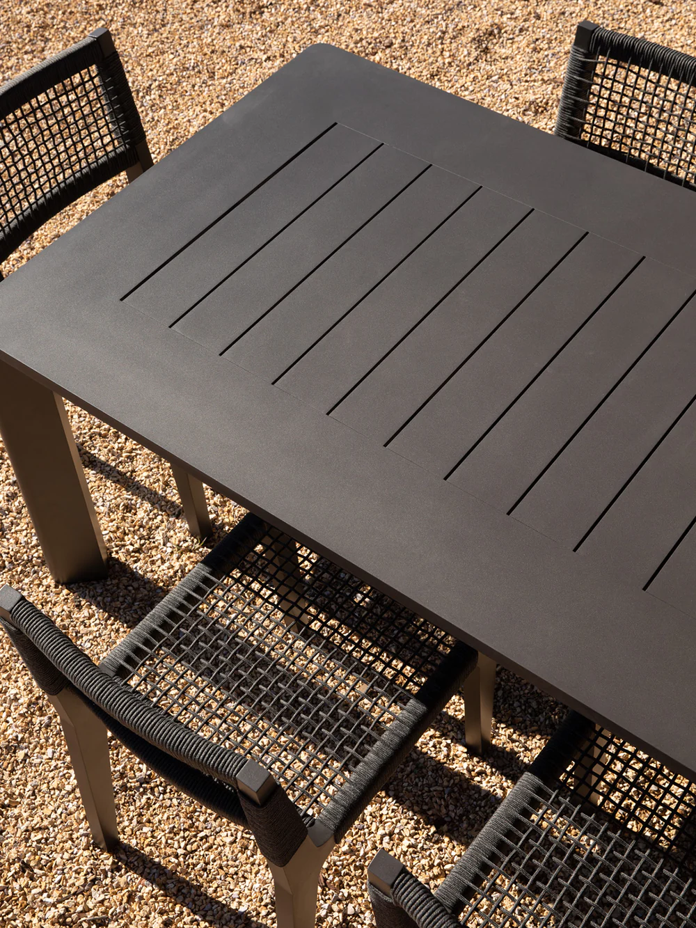 Crafted from high-quality extruded aluminum – available in Asteroid finish – with a superior quality European powder coating sourced from AkzoNobel® for weather resistance. Our Aluminum furniture is resistant to corrosion and rusting while still being light, strong and easy to clean. Asteroid is our dark grey finish – a contemporary staple to our product line and versatile to many styles.