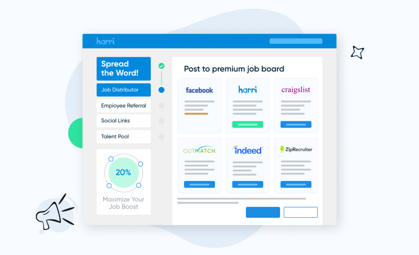 Harri allows you to streamline your recruitment efforts to improve the candidate journey by easily organise, screening, interviewing, and hiring talent all in one platform. Easily discover thousands of candidates that fit your unique hiring criteria using smart filters and customised applications. Our integrated talent acquisition tools enable you to easily reach, recruit, and engage active and passive candidates.