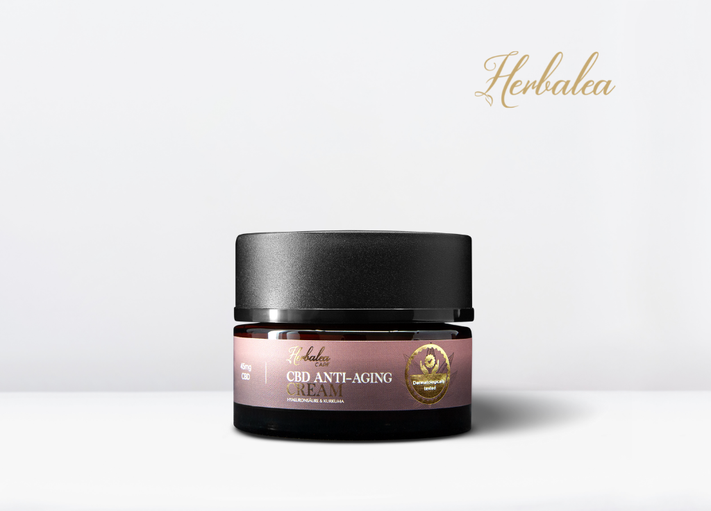 Natural CBD Anti-Aging Cream – Reduces wrinkles and smoothes your skin CBD Anti-Aging Cream by Herbalea provides your skin with corrective anti-aging protection. Innovative active ingredients protect the skin from moisture loss and give you a smooth, supple skin feeling. Valuable alpine herbs such as edelweiss, alpine rose and yellow gentian intensively nourish the skin. The probiotic active ingredient complex accelerates and improves skin regeneration. One jar contains 50ml CBD Anti-Aging Cream. 45 mg CBD Dermatologically tested Kosher certified For all skin types What makes our CBD Anti-Aging Cream so unique All hemp raw materials for our CBD cosmetics come from sustainable Swiss indoor production. They are processed by hand to ensure that only the best quality plants are later processed into hemp extract. The hemp extract is obtained through a gentle, ethanolic cold extraction process in a GMP environment. GMP (Good Manufacturing Practice) internationally regulates the manufacturing practice for pharmaceuticals. This is how we ensure that the hemp extract is particularly pure and contains exactly the right amount of cannabidiol, terpenes and other cannabinoids. All CBD hemp plants and hemp seeds are regularly checked by analysis. They are GMO-free and free of chemical fertilizers and growth hormones.