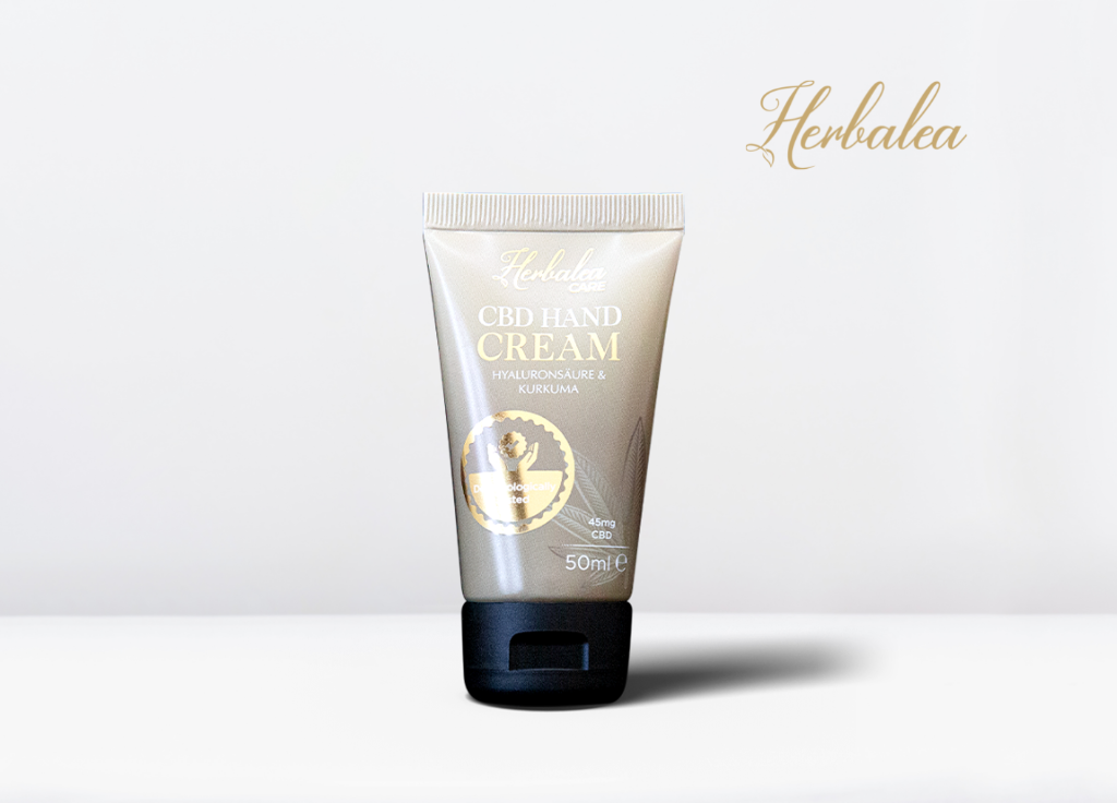 Natural CBD Hand Cream – care, protection and moisture for your hands Take good care of your hands. Especially in times of frequent disinfection, they are very stressed. Herbalea CBD Hand Cream is a natural hand cream with multifaceted effective plant extracts. The active ingredients of hyaluronic acid prevent skin aging, broccoli seed oil nourishes the skin and pervitin moisturizes it. One tube contains 50ml CBD Hand Cream. 45 mg CBD Dermatologically tested Kosher certified For all skin types What makes our CBD Hand Cream so unique All hemp raw materials for our CBD cosmetics come from sustainable Swiss indoor production. They are processed by hand to ensure that only the best quality plants are later processed into hemp extract. The hemp extract is obtained through a gentle, ethanolic cold extraction process in a GMP environment. GMP (Good Manufacturing Practice) internationally regulates the manufacturing practice for pharmaceuticals. This is how we ensure that the hemp extract is particularly pure and contains exactly the right amount of cannabidiol, terpenes and other cannabinoids. All CBD hemp plants and hemp seeds are regularly checked by analysis. They are GMO-free and free of chemical fertilizers and growth hormones. What ingredients are in our CBD Hand Cream Aqua (Water), Pentylene Glycol, Caprylic/Capric Triglyceride, Glycerin, Glycol Stearate SE, Undecane, Salvia Officinalis (Sage) Leaf Water, Tridecane, Cetyl Alcohol, Stearyl Alcohol, Cetearyl Ethylhexanoate, Alcohol Denat. (SD Alcohol 38-B), Saccharide Isomerate, Cannabis Sativa Leaf Extract, Curcuma Longa (Turmeric) Root Extract, Brassica Oleracea Italica (Broccoli) Seed Oil, Propolis Extract, Arctium Lappa Root Extract, Azadirachta Indica Seed Extract, Carum Carvi (Caraway) Seed Extract, Eucalyptus Globulus Leaf Extract, Mentha Piperita (Peppermint) Leaf Extract, Rosmarinus Officinalis (Rosemary) Leaf Extract, Thymus Vulgaris (Thyme) Extract, Helianthus Annuus (Sunflower) Seed Oil, Cetearyl Alcohol, Carbomer, Tocopheryl Acetate, Parfum, Sodium Hydroxide, Alcohol, Bisabolol, O-Cymen-5-ol, Sodium Cetearyl Sulfate, Sodium Hyaluronate, Citric Acid, Sodium Citrate, Sodium Benzoate, Potassium Sorbate, Tocopherol, Disodium Phosphate, Potassium Phosphate Our CBD Hand Cream is kosher certified.