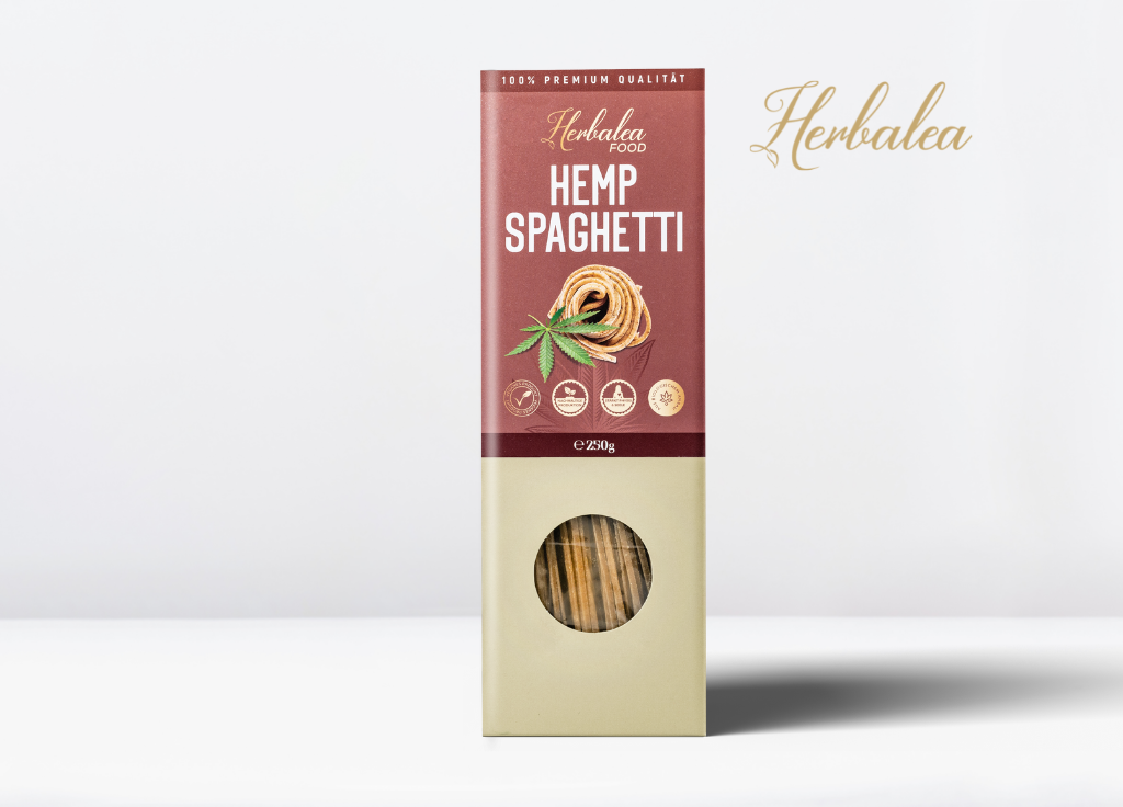 Organic Hemp Spaghetti – The nutty treat for young and old alike Do you know anyone who doesn’t like spaghetti? Neither do we. With vegan Organic Hemp Spaghetti from Herbalea made from high-quality durum wheat and edible hemp flour, you can conjure up a delicious meal on the table in no time at all. Children like the pleasant nutty taste, parents the high content of valuable nutrients. One package contains 250g Organic Hemp Spaghetti. Guaranteed CBD & THC free. Kosher certified. What makes our Organic Hemp Spaghetti so unique Whoever likes hearty wholefood pasta will love our Organic Hemp Spaghetti. They have a pleasant nutty, full-bodied taste that harmonizes perfectly with all kinds of spicy and mild sauces. In addition, hemp flour is full of valuable nutrients such as vitamins, protein, minerals and fiber. With Organic Hemp Spaghetti from Herbalea you enjoy 100% nature. Both the high-quality durum wheat and the organic hemp flour come from certified organic cultivation. The flour is made from unpeeled hemp seeds of the EU varieties Fedora 17, Uso 31, Earlina and Futura. All organic raw materials are grown in Austria and packaged with great care in Switzerland. What ingredients are in our Organic Hemp Spaghetti Organic durum wheat semolina (88%) Organic hemp flour (12%) Nothing else! We consistently do without flavourings, flavour enhancers and additives. All ingredients come from Austrian, certified organic cultivation. Organic Hemp Spaghetti from Herbalea are rich in natural nutrients and lactose-free. They are made without the addition of egg, making them ideal for vegan diets. Our Organic Hemp Spaghetti are kosher certified. Nutritional values Ø/100g Energy value (KJ / kcal): 1494/353 Fat: 2.2g thereof