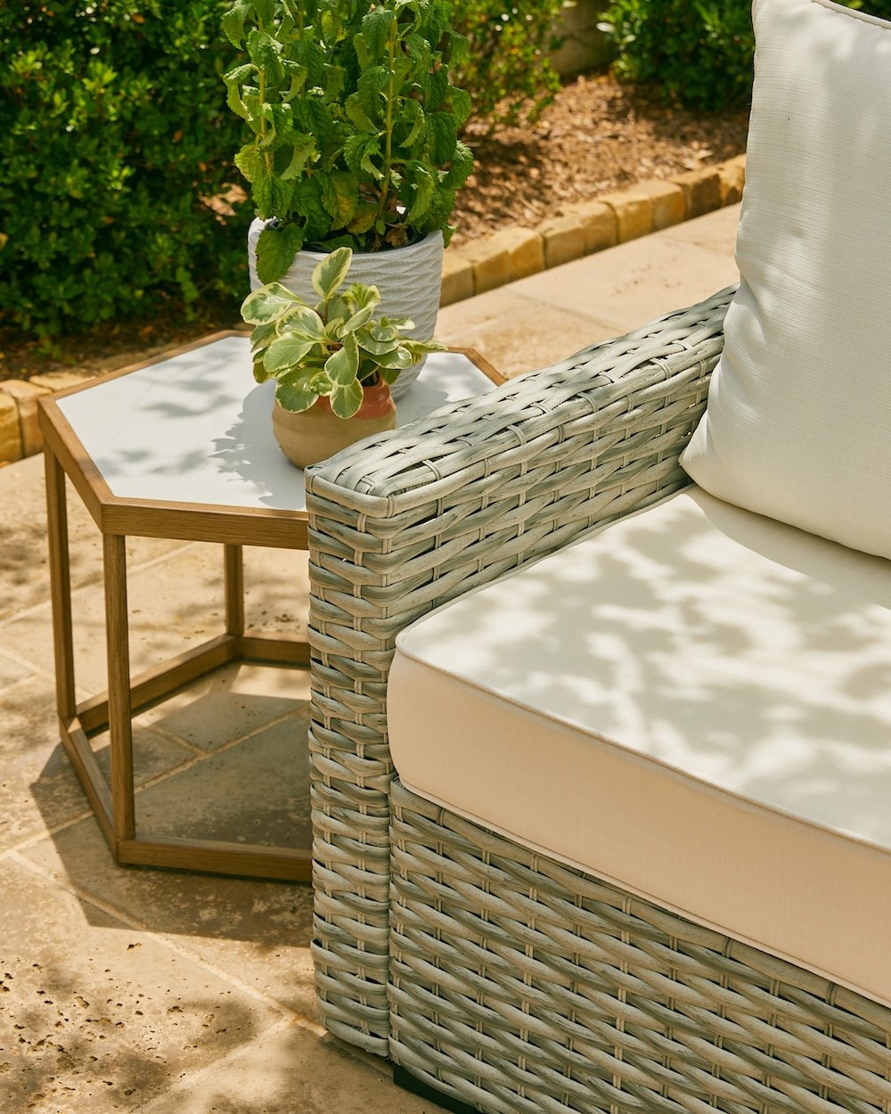 Transform your outdoor sanctuary with the versatile Omni table—an adaptable addition to your space. Whether you desire a classic end table or a dynamic coffee table, the Omni table effortlessly caters to your evolving needs. Crafted with sturdy steel frames and adorned with durable marble ceramic tiles, it seamlessly complements any outdoor environment.