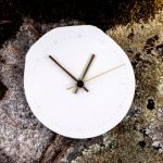The Improviser clock is made of a single porcelain slab. The outer shape is the result of fluid porcelain flowing and stopping. Every clock is unique and different, the porcelain looks frozen in time. The brass hands and the time indication form a poetic contrast with the outline of the clock, which is shaped by chance. This design reminds you that our measured time is rigid and rational, in contrast with much of our lives. Every time you look at this clock, be reminded that the unpredictable can surprise you, just dare to improvise. Available in white, dark grey, and soft pink.