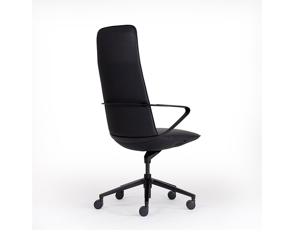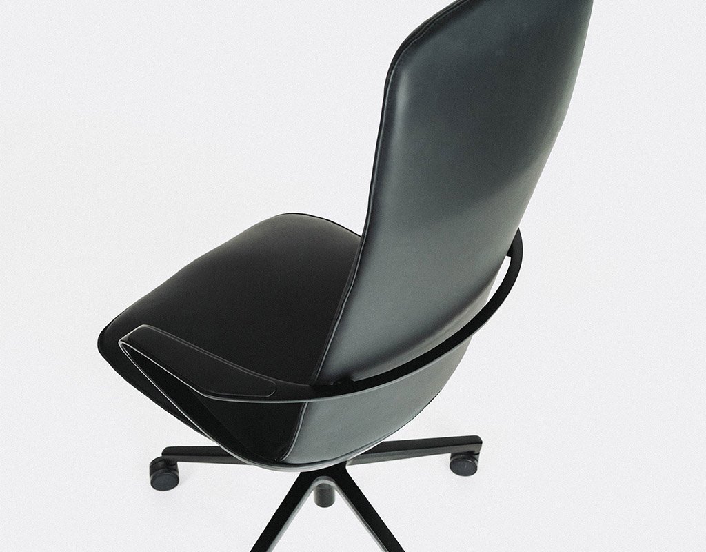 The slimline, minimalist design of the executive Superio® Chair places it in a class of its own compared to other swivel chairs. The completely contiguous seat shell with fully integrated operating controls ensure a uniform look throughout. The cover, which also fully covers the underside of the seat, is made from a high-quality microfibre imitation leather that feels pleasant to the touch. When leaning backwards, the rocking mechanism ensures that the backrest and seat tilt backwards together, thereby guaranteeing a very comfortable and ergonomic sitting experience.