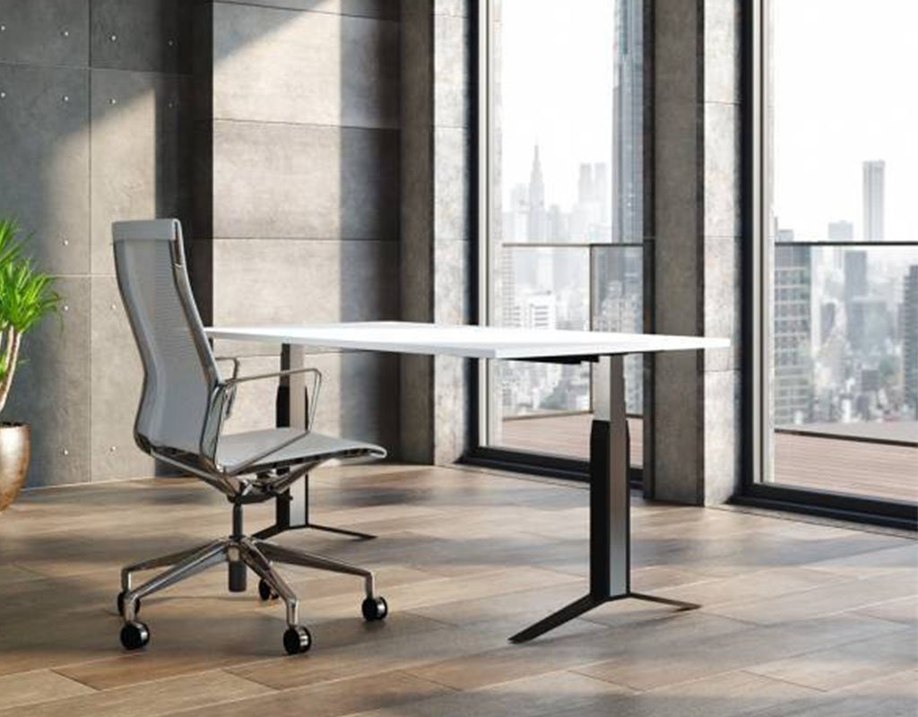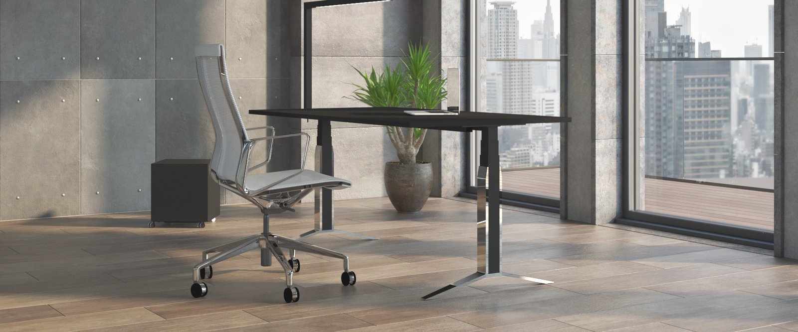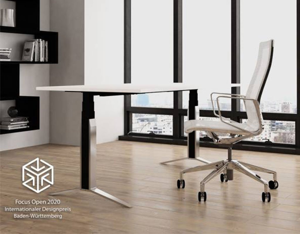 Electric height-adjustable to 1340 mm, the Masterlift® 5 offers the user an ergonomic workstation and supports healthy movement patterns. It is also extremely stable. The drive technology impresses with its lifting power, adjustment speed and minimal power consumption. This height-adjustable desk was awarded the "Focus Open" international design prize in 2020 for above-average design quality. Its filigree construction of solid 15 mm steel gives it a strikingly attractive appearance. The version with chrome-plated foot brackets has an elegant look.