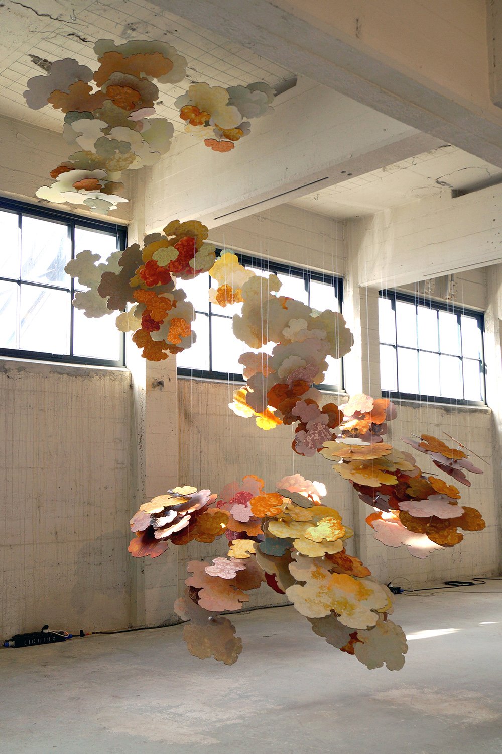 The Suspended artworks create a unique sensation, making viewers feel detached from the ground. These floating sculptures seem to defy gravity, offering an immersive experience of cloud-like forms and a vibrant palette of colors.