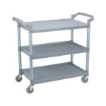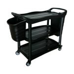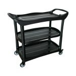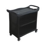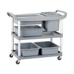 These utility carts are constructed with durable materials like polypropylene and steel for hygiene and longevity. They are equipped with multiple shelves to organize various dining essentials. They serve as a convenient workspace for plating dishes or holding small kitchen appliances. They also provide storage for utensils, condiments and serving items.