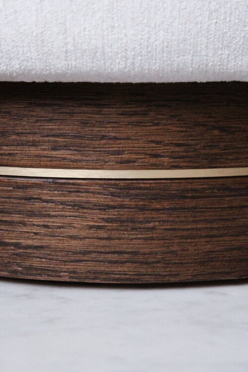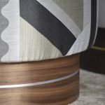 Modest in design yet solid in form, the La Sorellina pouf is a modern interpretation of the classic pouf. With its sculptural presence and soft textures, the pouf combines art and functionality. The use of natural materials of high quality and the distinctive metallic décor makes the pouf stand out as a bold statement. La Sorellina is ideal for use in front of the dressing table, at the end of a coffee table, as a footrest accompanying an armchair, or as seats for a dining table.