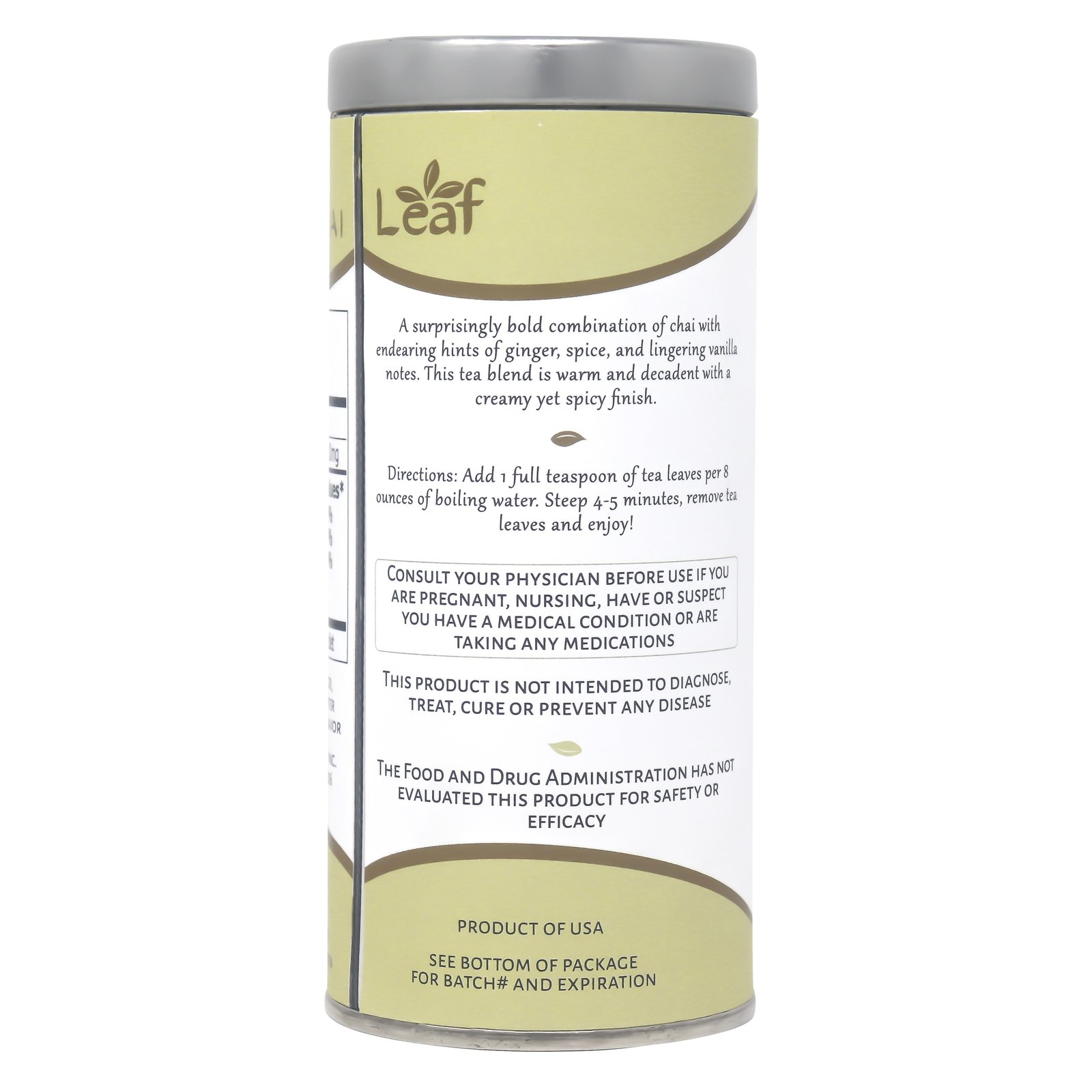 A surprisingly bold combination of chai with endearing hints of ginger, spice, and lingering vanilla notes. This tea blend is warm and decadent with a creamy yet spicy finish.
