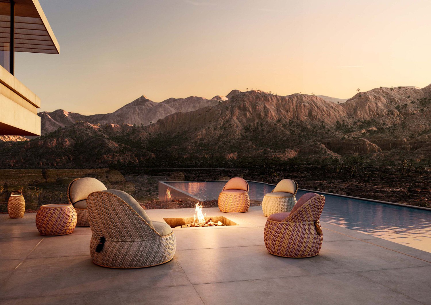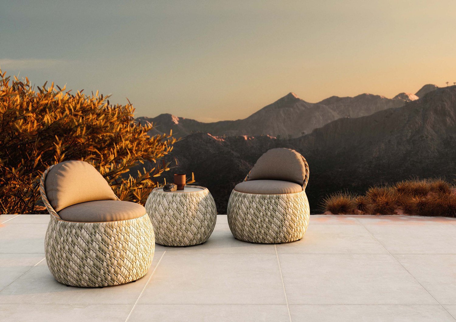 Comprised of circular lounge elements, DALA is easy-going yet artisanal, characterized by a weaving style so innovative and distinctive that it has been successfully patented. New for 2021, Stephen Burks’ award-winning collection welcomes five new colorways—rioja, cuba, bahamas, ubud, and ibiza—inspired by DEDON’s ongoing Tour du Monde, in addition to a club chair and plush new seating cushions. The exciting color palette, developed with renowned colorist Giulio Ridolfo, features signature DEDON tones in inspiring new combinations. The colors are available for the whole DALA range, from planter to lantern, footstool to lounge chair, and will replace the current offering. DEDON’s color worlds—light, dark, open, bright and warm —accommodate an alluring composition of tones and shades that coordinate beautifully across collections. DALA’s colors were developed in collaboration with Giulio Ridolfo, who has helped shape the DEDON palette over many years. White and natural, ‘ibiza’ sits comfortably within the light color world, whereas ‘rioja’—a warm hue that conveys elegance and ease—belongs to both the dark and warm color worlds. ‘bahamas’ is a sophisticated interplay of light and natural tones that’s at home within the open and light color worlds, and ‘cuba’ is a welcoming, lively shade from the bright and warm color world. Bold, engaging and intimate, ‘ubud’ belongs to the dark and open color worlds. By traversing through these color worlds, DALA’s colorways extend not only to the whole collection, but to almost any outdoor scenario you can imagine—from cosmopolitan sky bars to beachside villas, alpine farmhouses to desert retreats.
