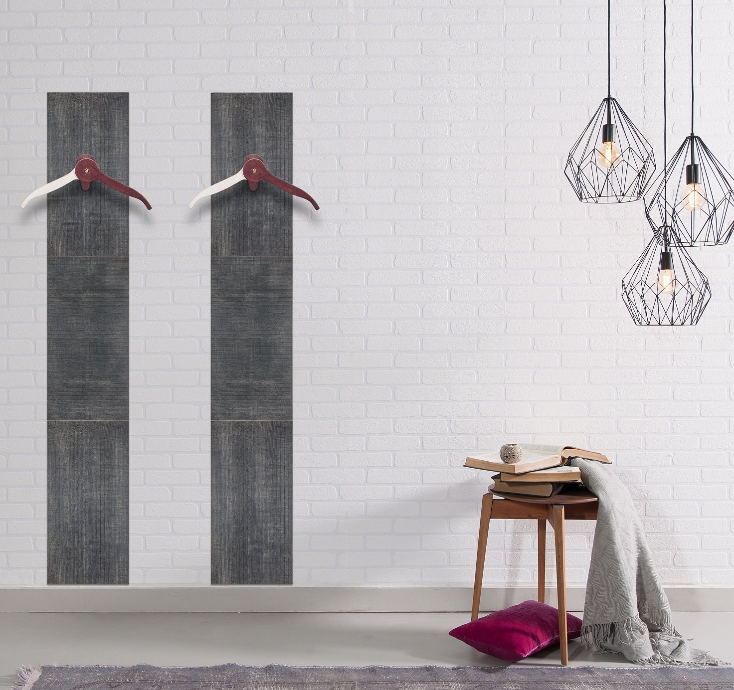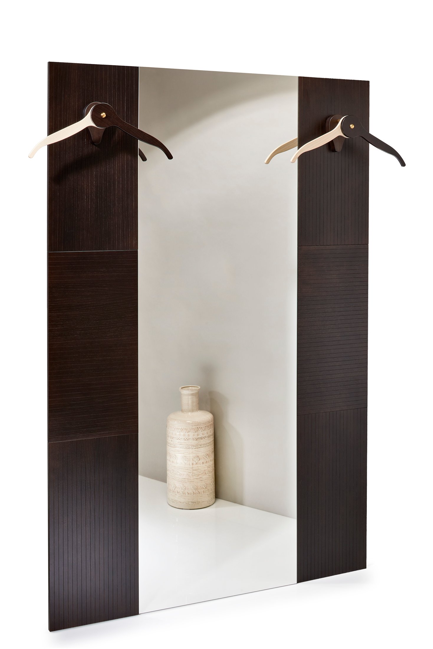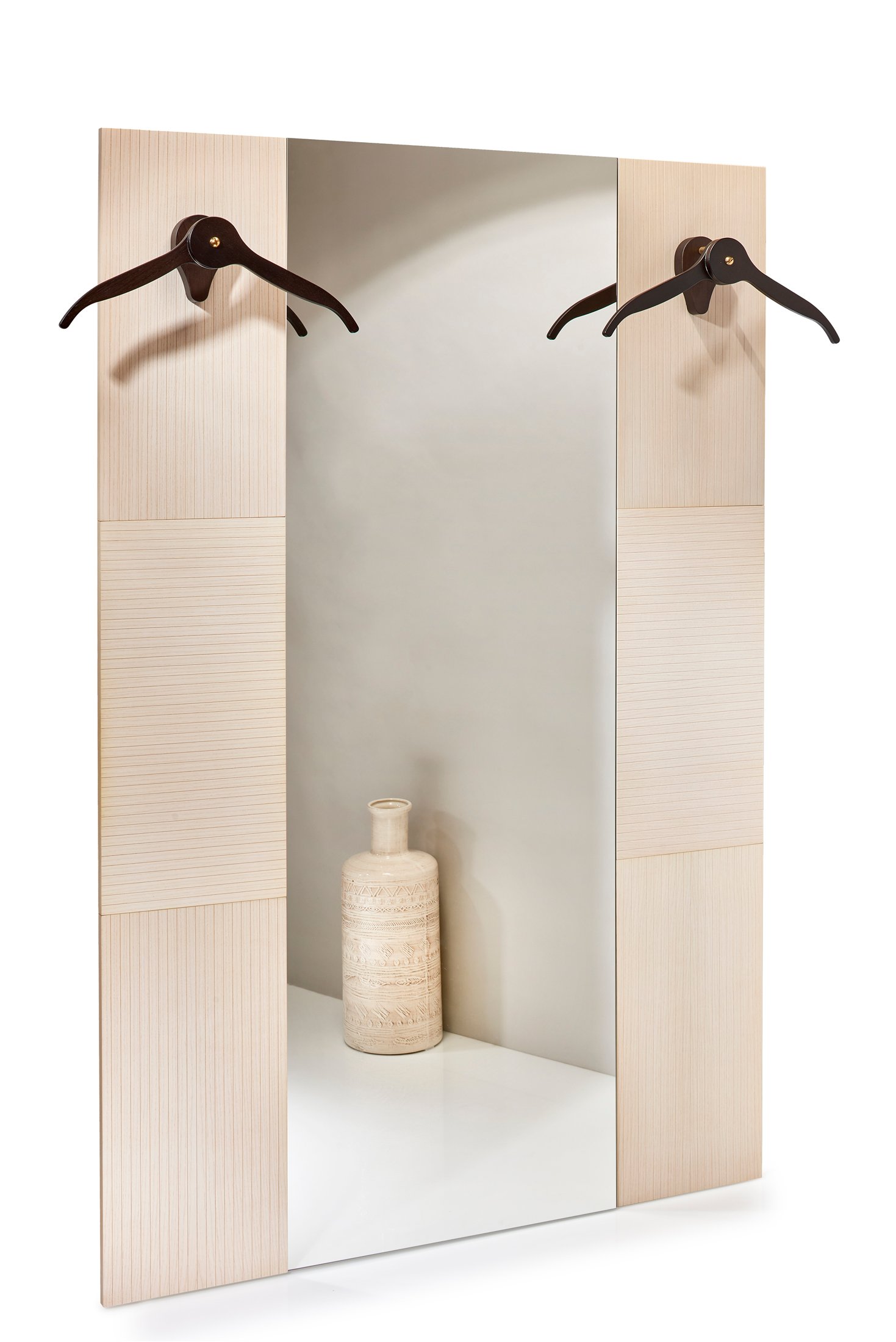 To fix the panels to the wall, simply insert four screws at the ends. In a few minutes you can admire the beauty of this product emphasize your furniture. Dimensions in cm: width 30 height 60 thickness 2 material: poplar ash veneer base colors : white, wenge, gray Dimensions of the single panel in cm: width 30 height 60 thickness 2 material: poplar and ash veneer base colors: white, wenge, gray measurements of the composition with 2 hangers height 180 width 30 thickness 2 Dimensions composition with mirror height 180 width 90 thickness 2