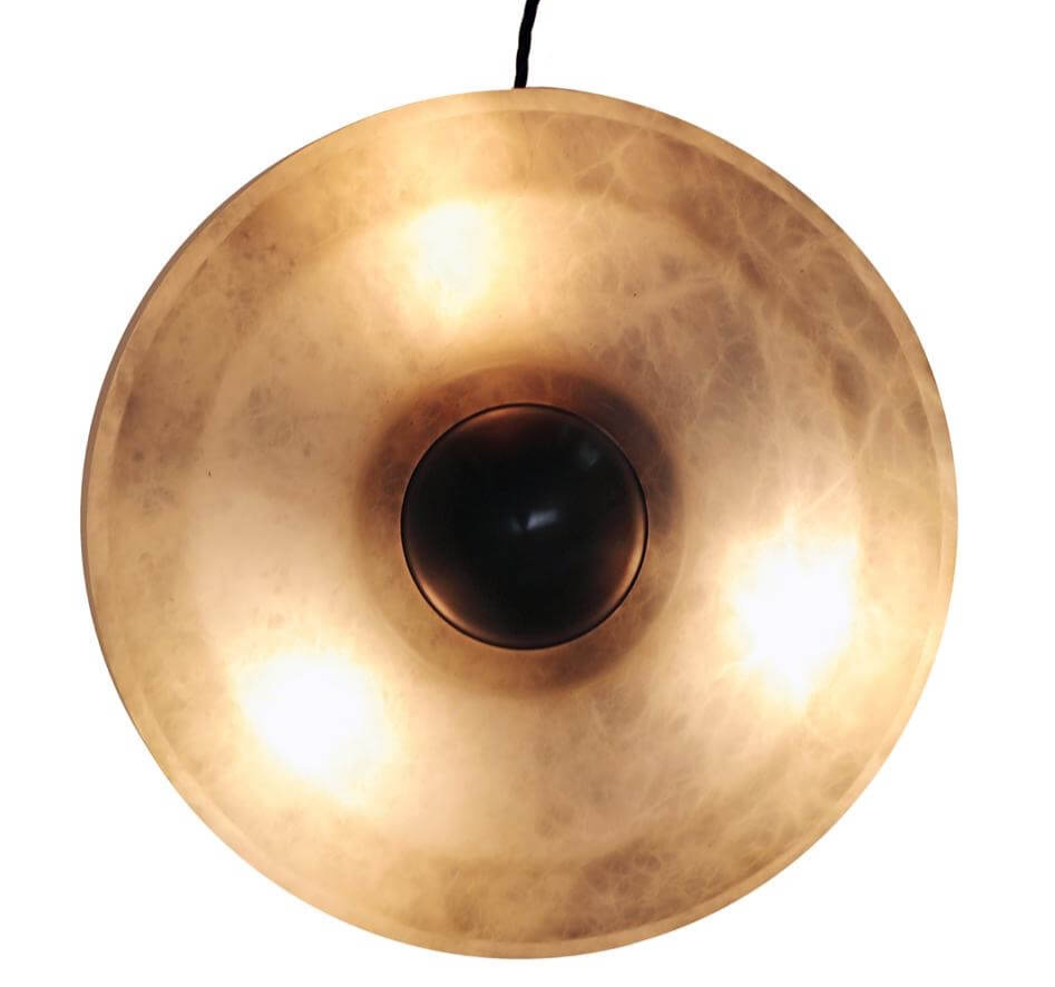 The use of alabaster for the lampshade is a great choice as it is a natural material that allows for beautiful light diffusion while also highlighting its natural veining.