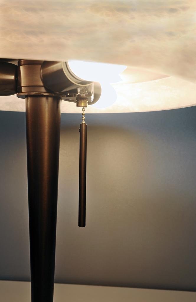 The use of alabaster for the lampshade is a great choice as it is a natural material that allows for beautiful light diffusion while also highlighting its natural veining.