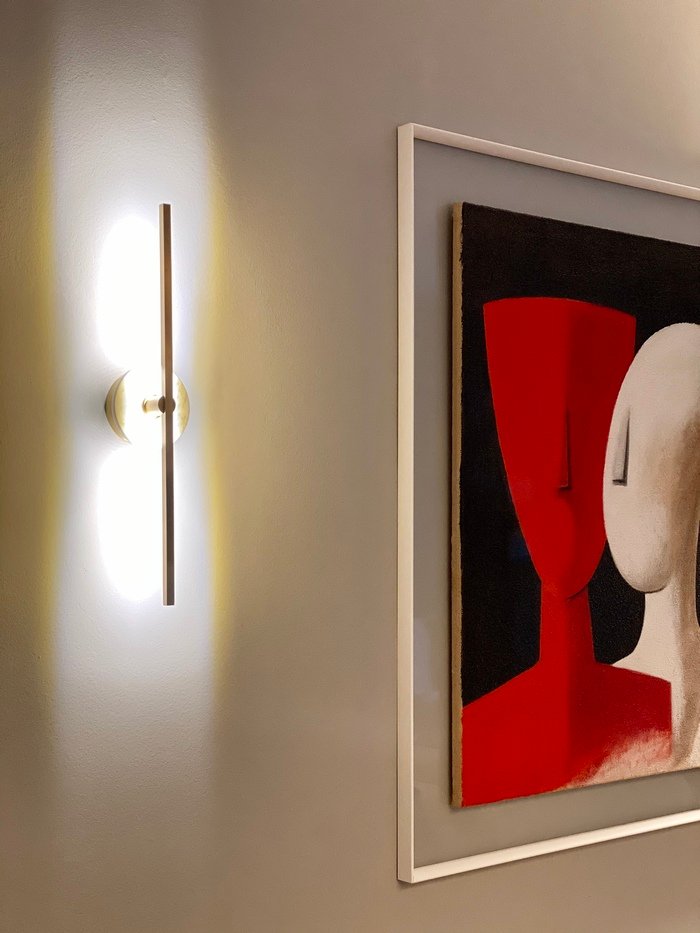 The Stick wall sconce is a stylish and functional lighting fixture that combines modern design with the latest LED technology. Its thin brass profiles give it a minimalist look, while the LED lights provide powerful and warm illumination that is both functional and atmospheric.